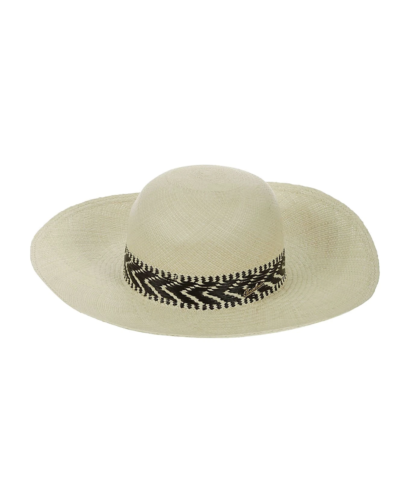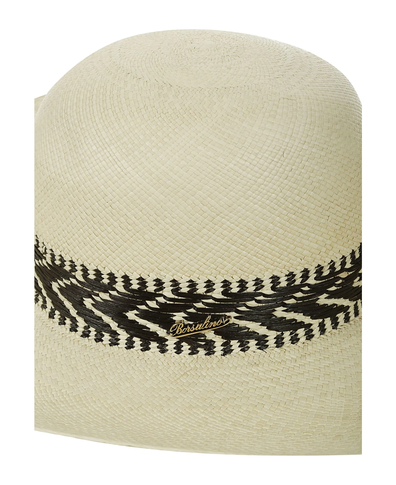 Borsalino Beige straw hat, 11cm wide brim, contrasting fabric detail, brass logo detail.