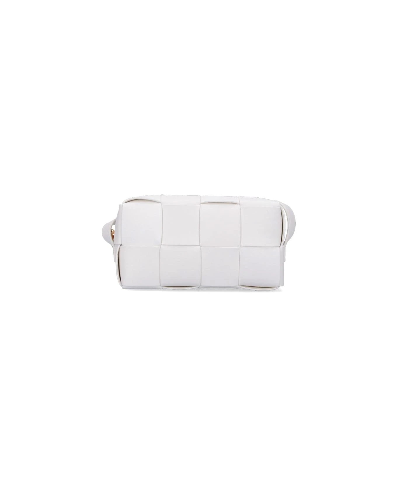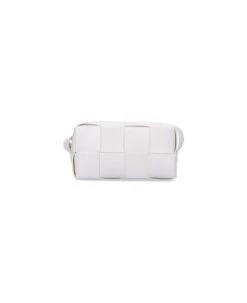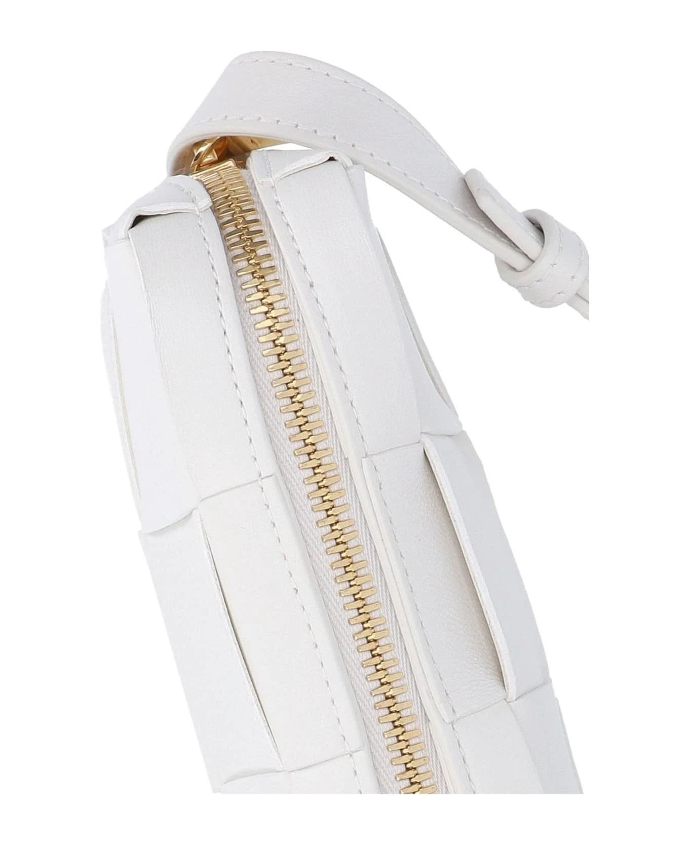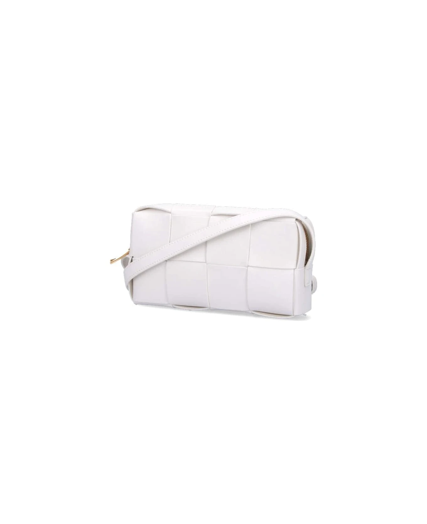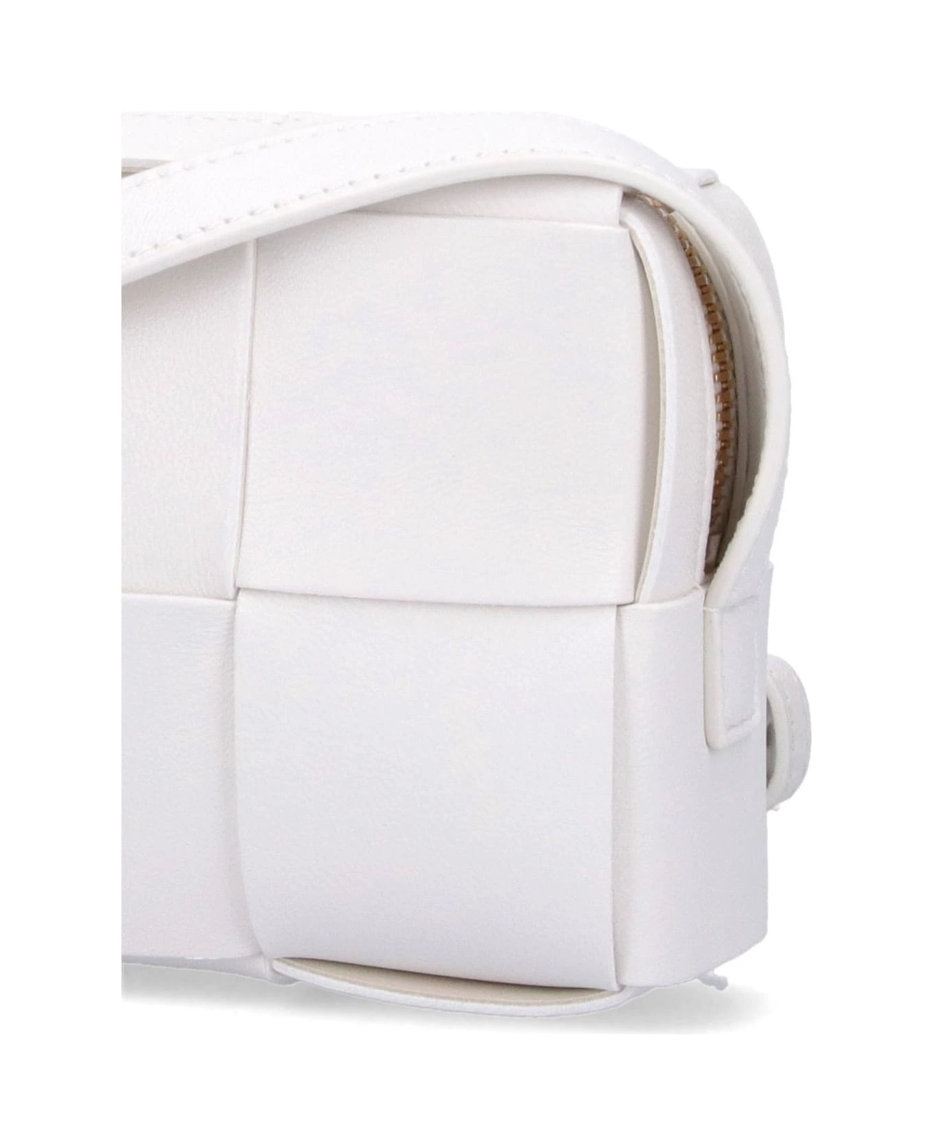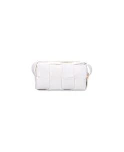 Bottega Veneta Brick Cassette shoulder bag in white woven leather, adjustable top shoulder strap, zip closure, main interior compartment