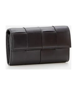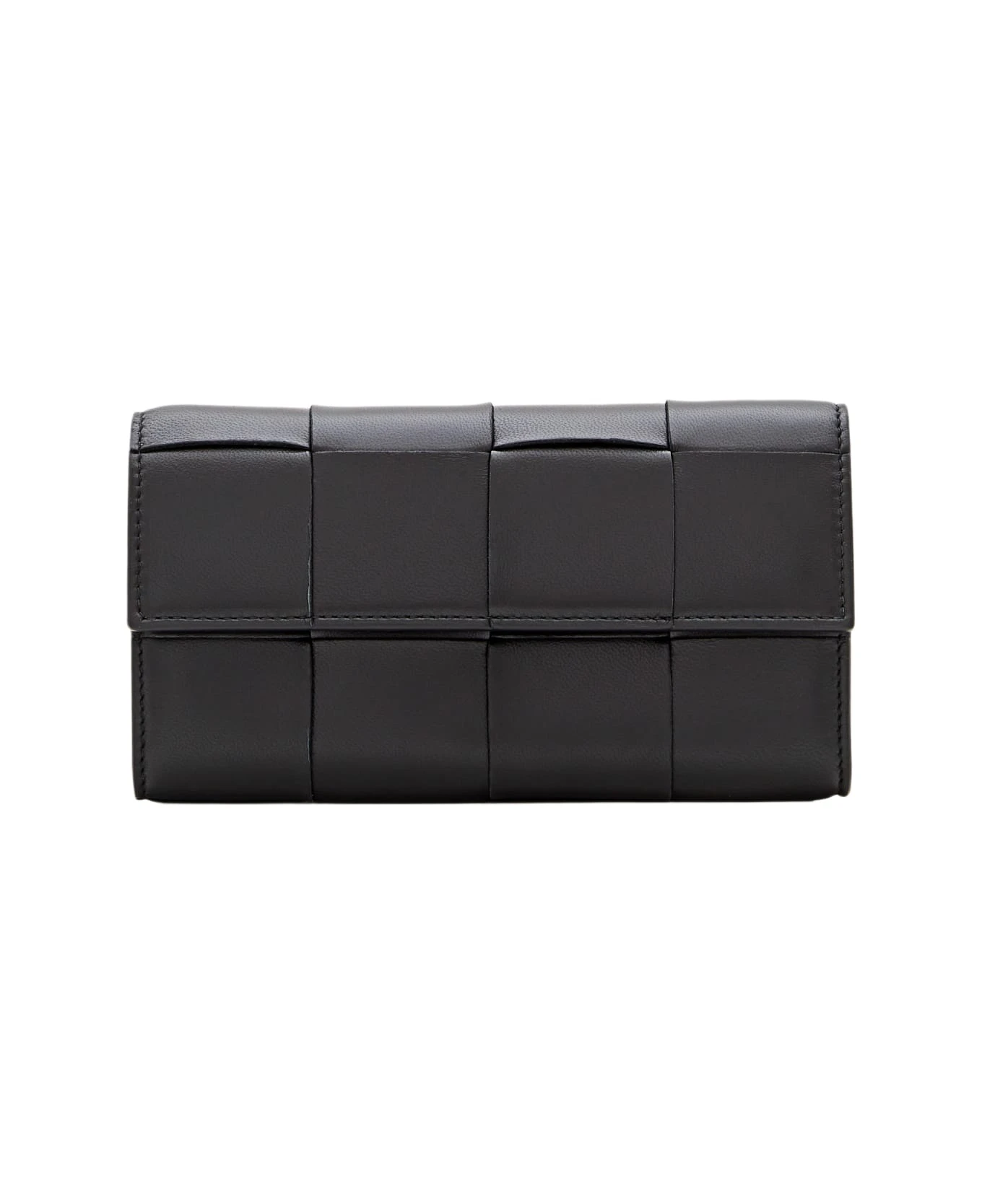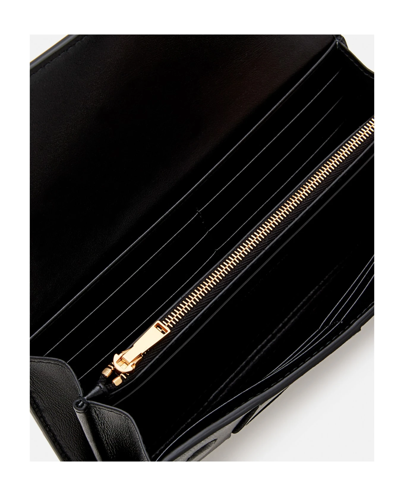 Twelve card slots. Two note compartments. One additional pocket. One zipped coin purse. Magnetic closure. Color: black.