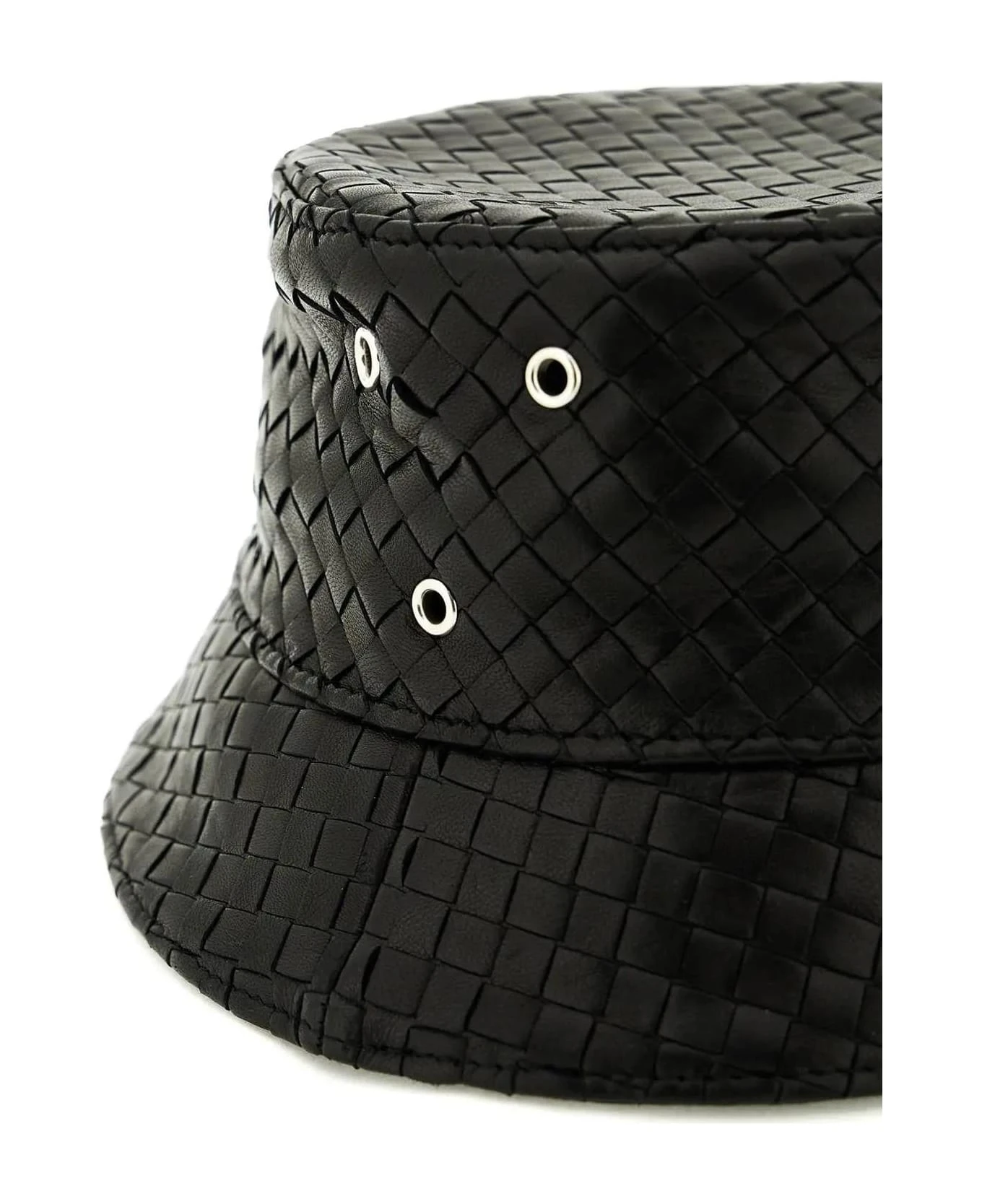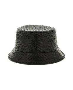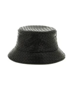 Bottega Veneta bucket hat crafted in leather with iconic Intrecciato motif, ventilation eyelets and lined interior. The item in photo is size S.