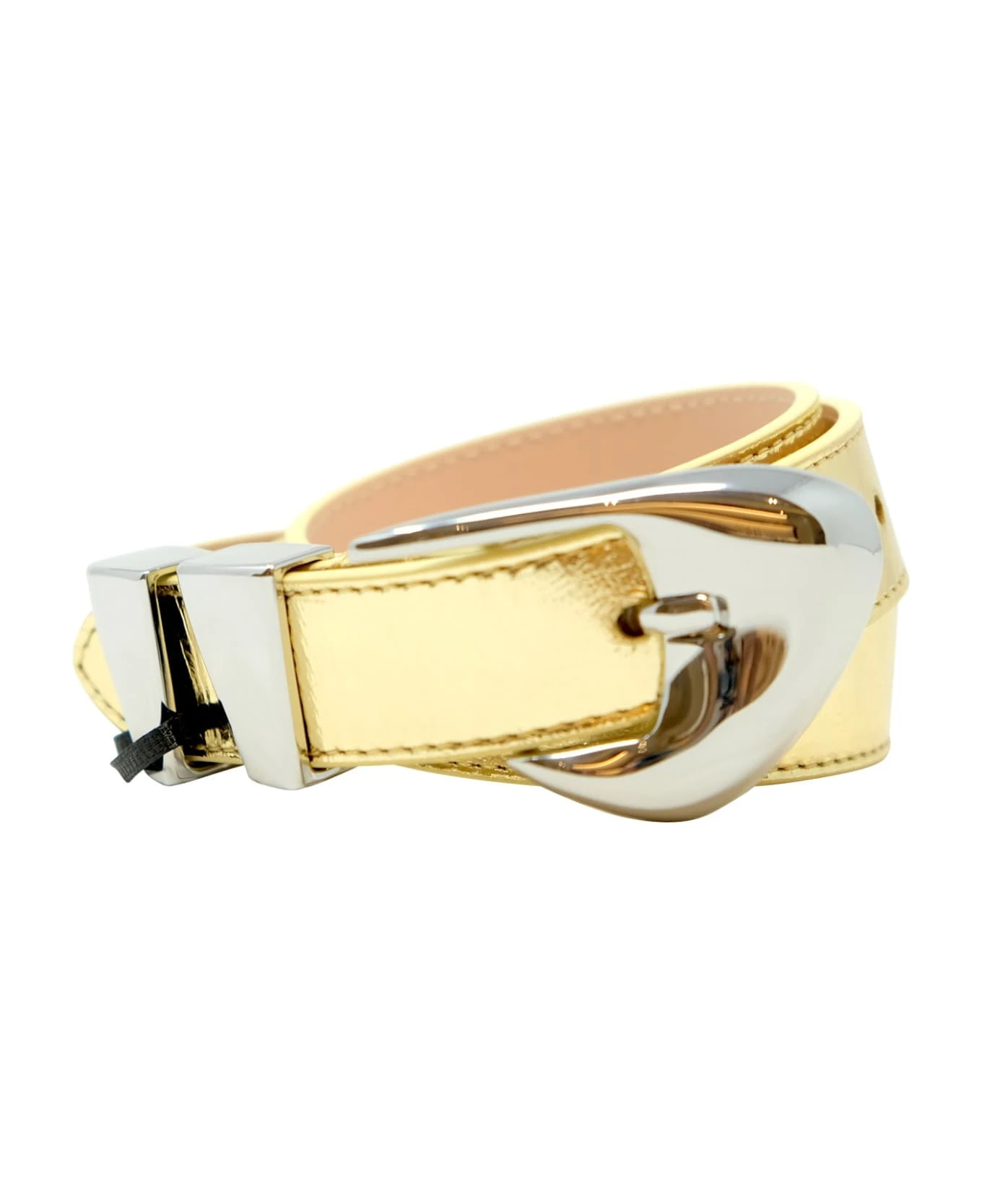 BY FAR GOLD LEATHER MOORE METALLIC BELT, product code 23SSMOOPCHA, style name MOORE, color GOLD, material LEATHER, season CARRY OVER