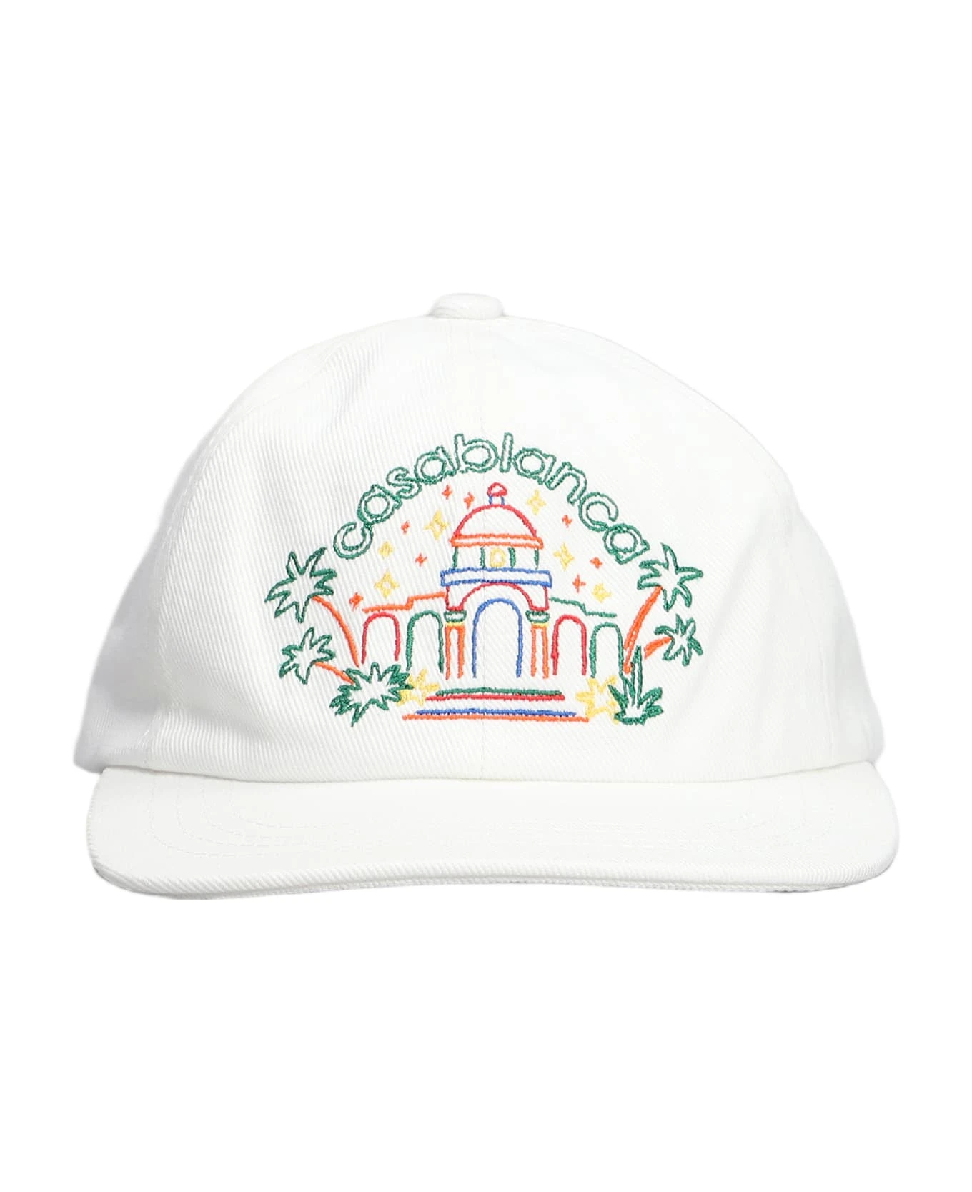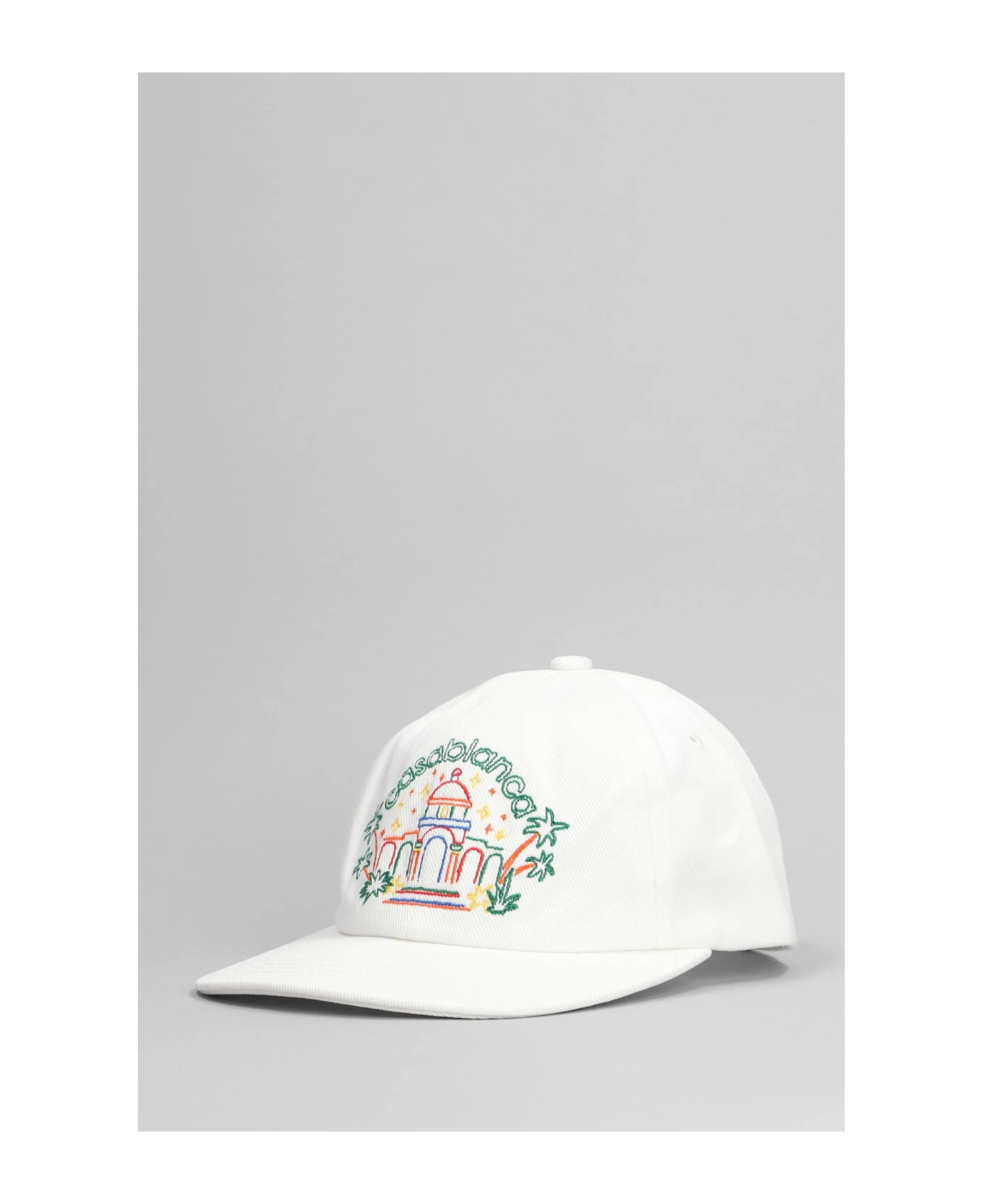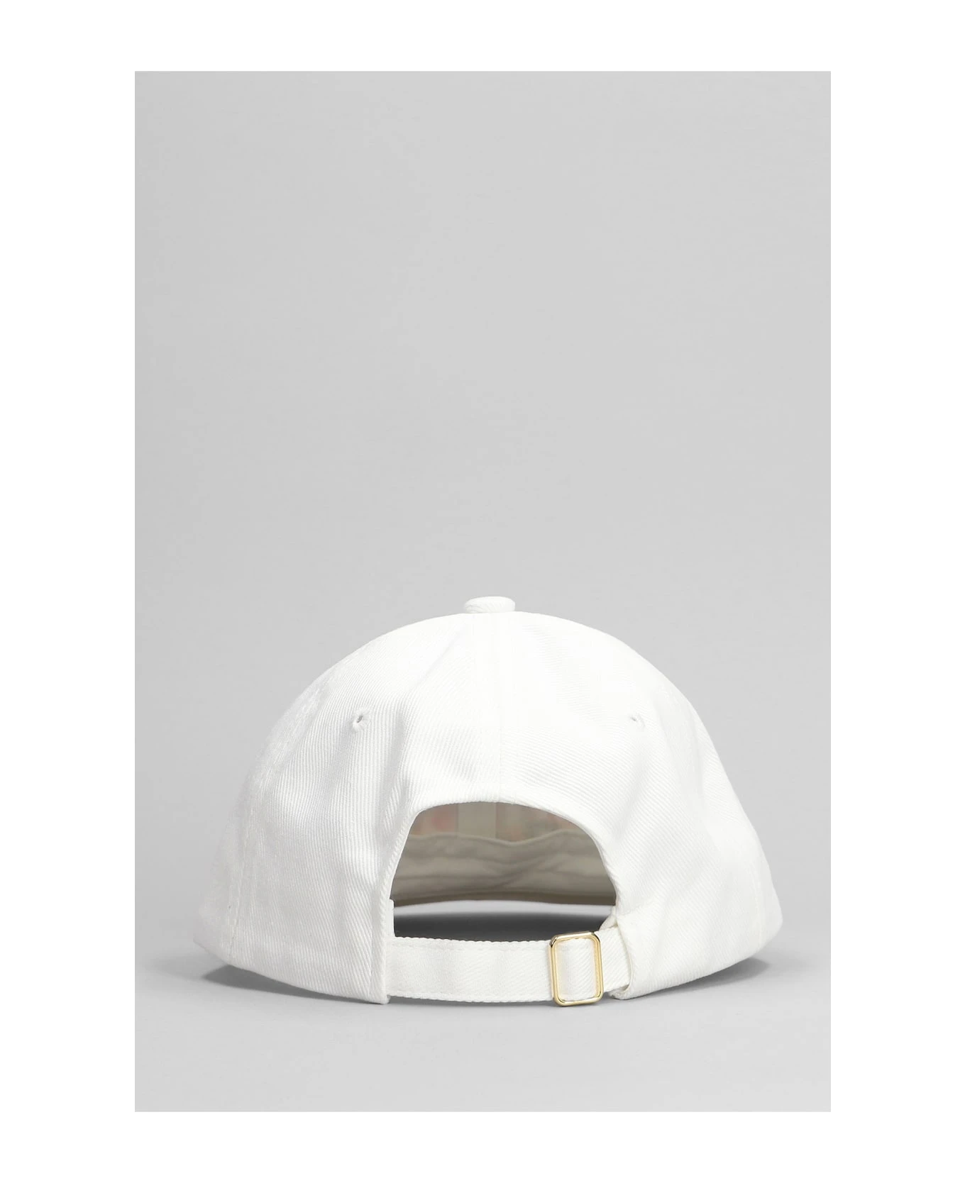 Hats in white cotton, curved peak, embossed front logo, adjustable belt, 100% cotton, Made in Lithuania