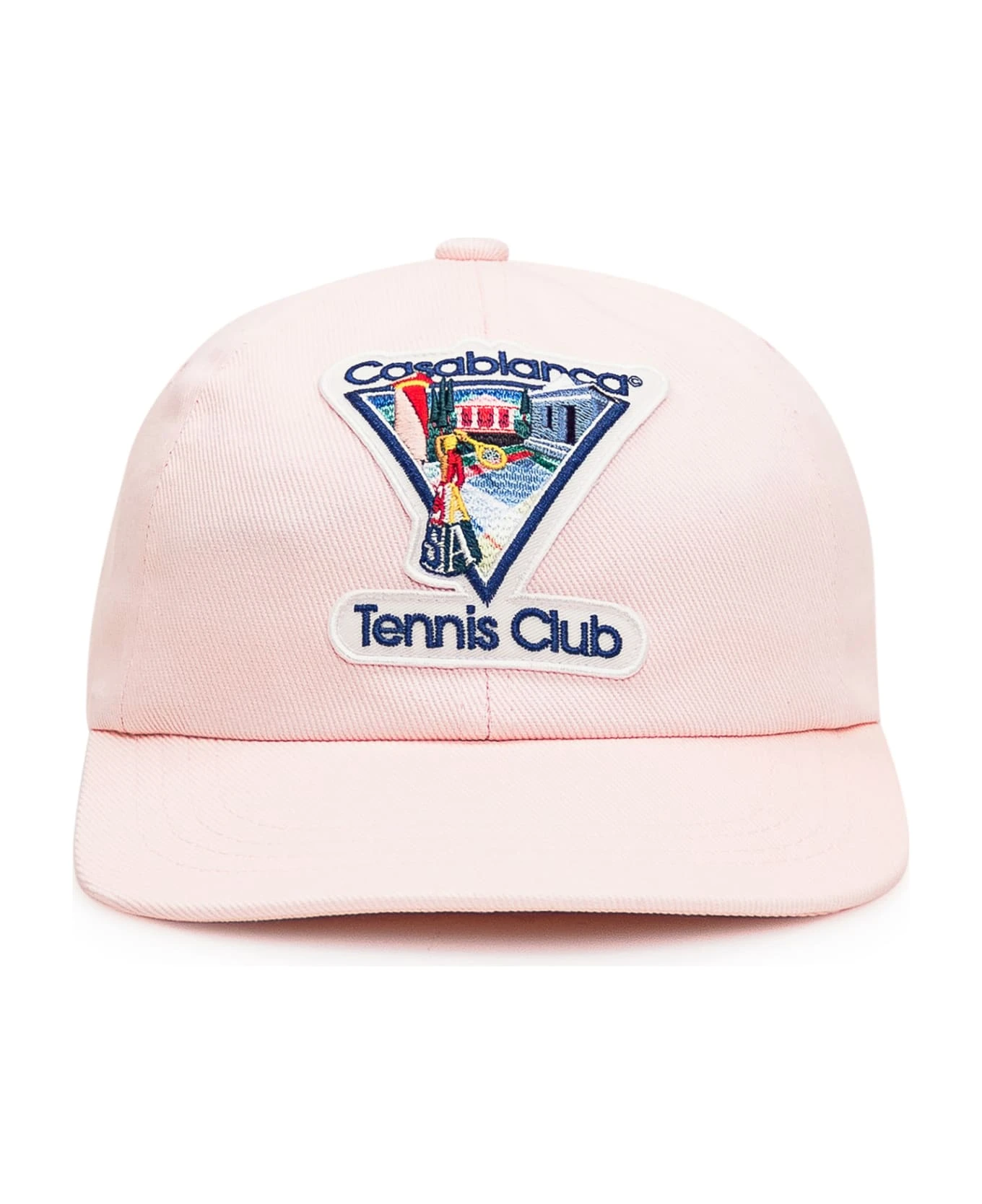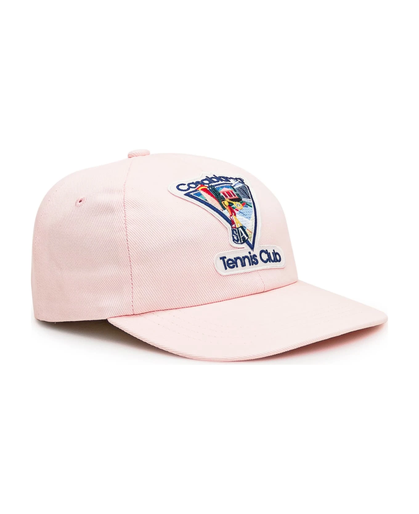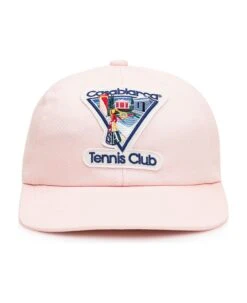 Pink hat with visor. Adjustable strap on the back. Patch Logo on the front.