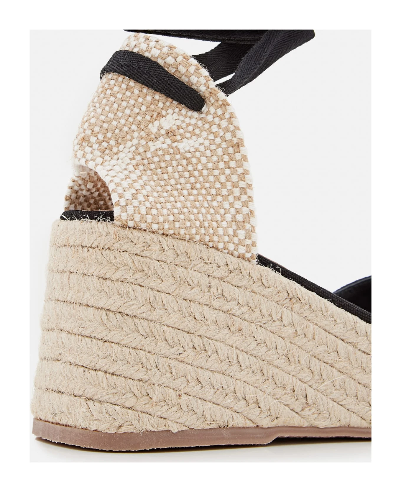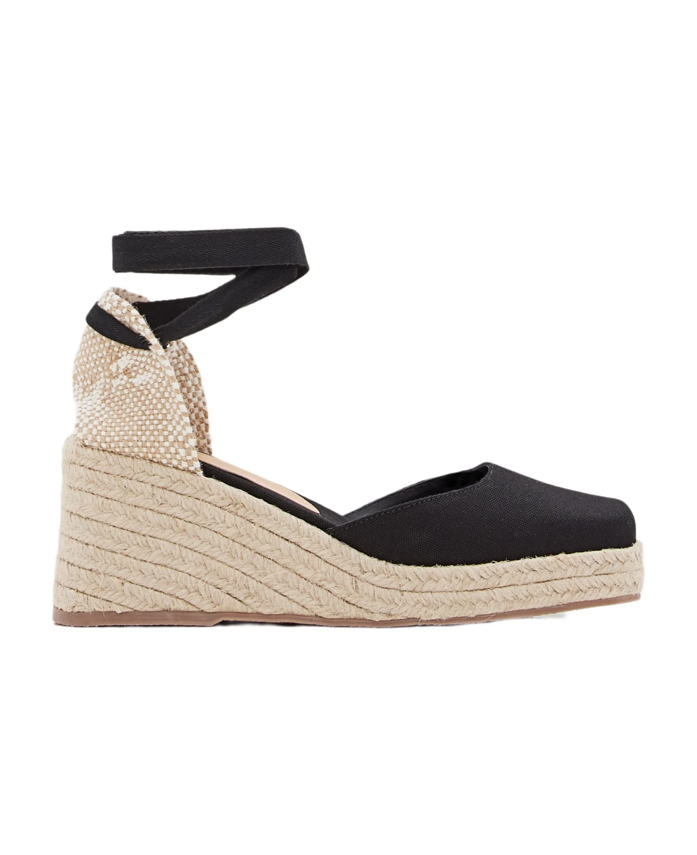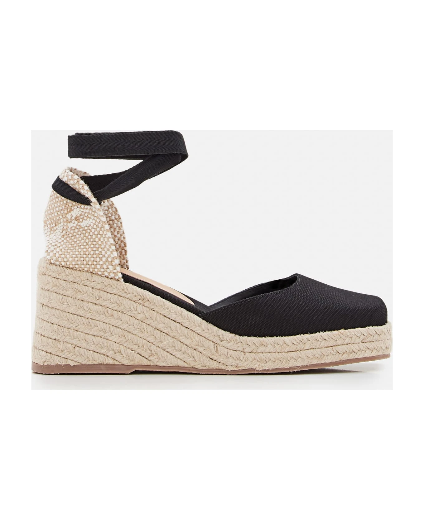 Cotton upper Synthetic sole Lace-up ankle strap Color: black.