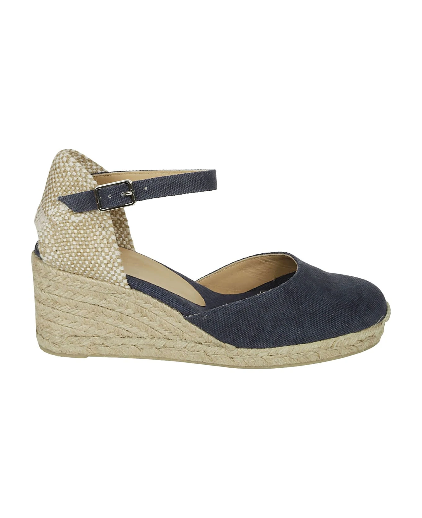 Castaner espadrilles with ankle bracelet, upper in cotton, rubber sole, wedge height 7 cm.