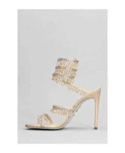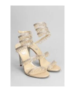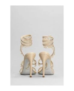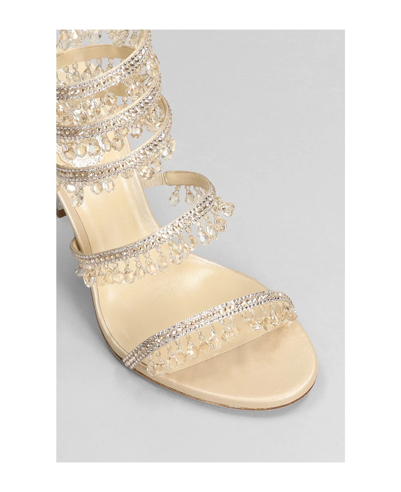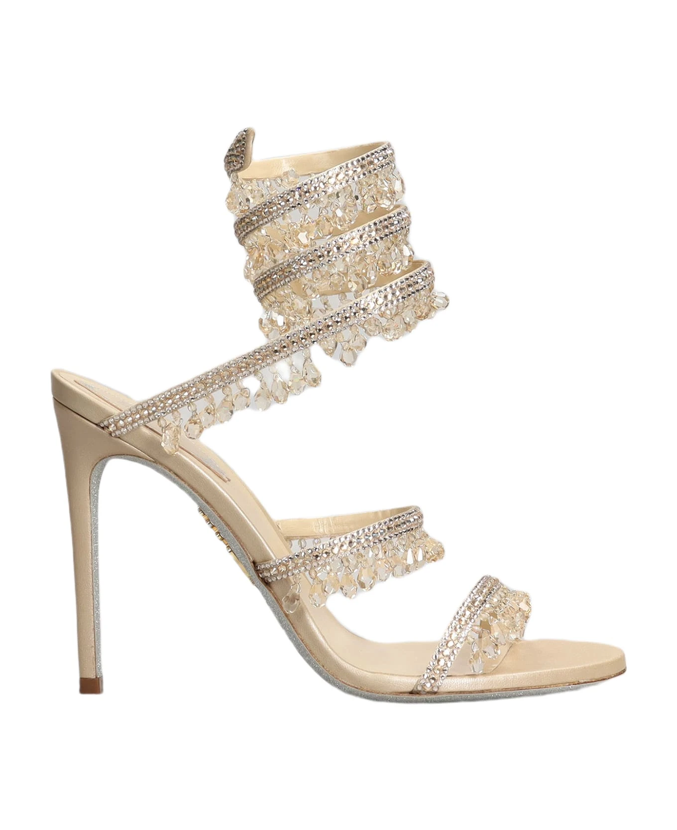 Chandelier Sandals in beige satin, crystals detail, snake strap, two straps, 100% satin, leather sole, 110 mm heel, Made in Italy