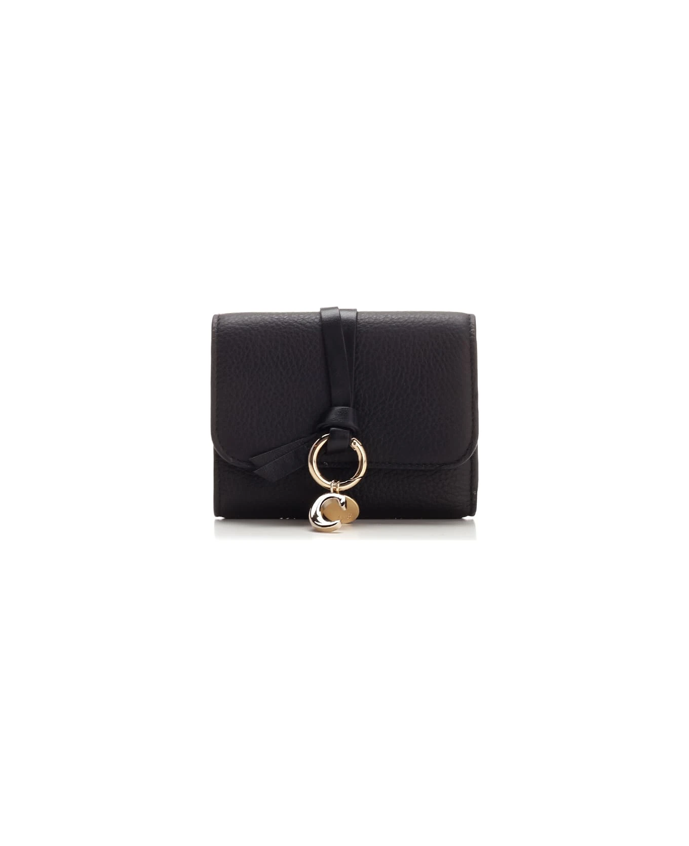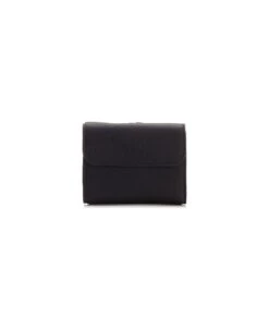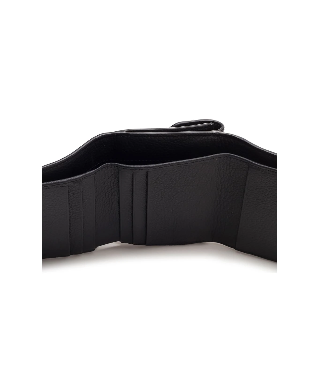 Compact trifold wallet “Alphabet” by Chloè in black leather, space for banknotes, various slots for cards and cards, a pocket for coins.