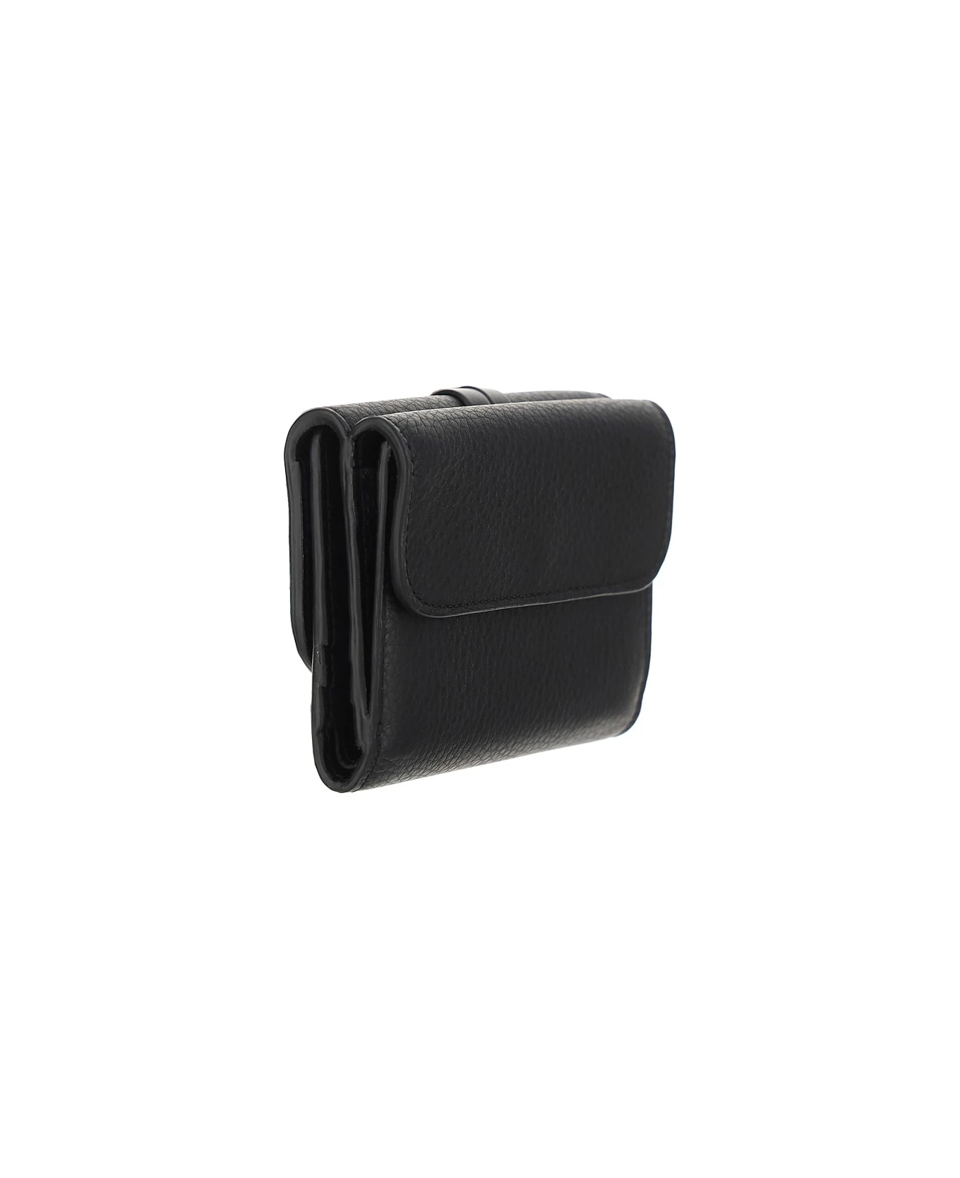 Calfskin alphabet wallet by chloé, snap opening, single main compartment and four flat pockets, gold charm detail with engraved logo and leather laces on front, pocket on the back.