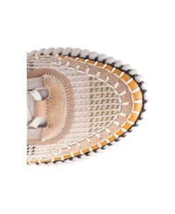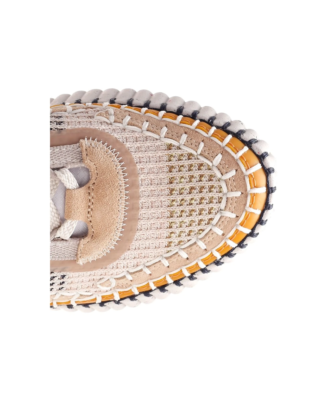 “Nama” sneakers in biscuit-colored mesh by Chloè with contrasting grooved sole, white laces and contrasting logo on the back.