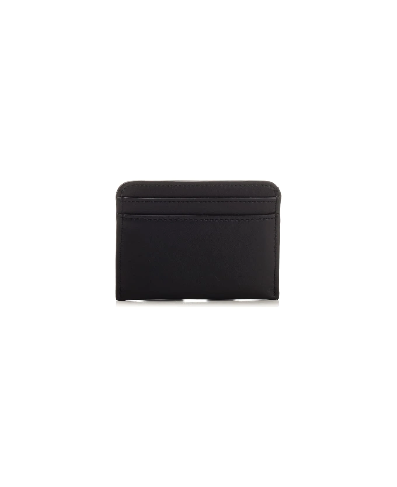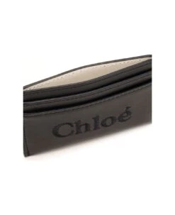 Card holder from Chloè in glossy black calf leather with front embroidered logo, one main compartment, four card slots.
