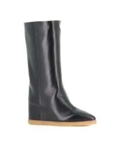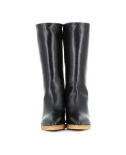 Black soft leather tubular slip-on soft leather Boot from Chloè, without seams, featuring by a covered internal wedge and a tapered toe. Lined interior. Rubber sole. Heel: 8 cm