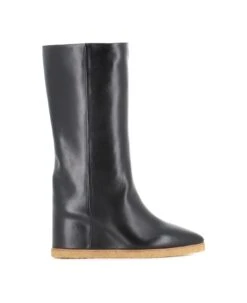 Black soft leather tubular slip-on soft leather Boot from Chloè, without seams, featuring by a covered internal wedge and a tapered toe. Lined interior. Rubber sole. Heel: 8 cm