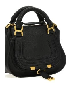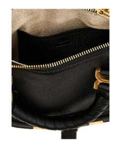 ‘Mini Marcie’ leather shoulder strap, double braided handle, adjustable and removable shoulder strap, and zip closure.