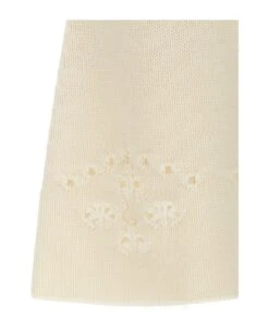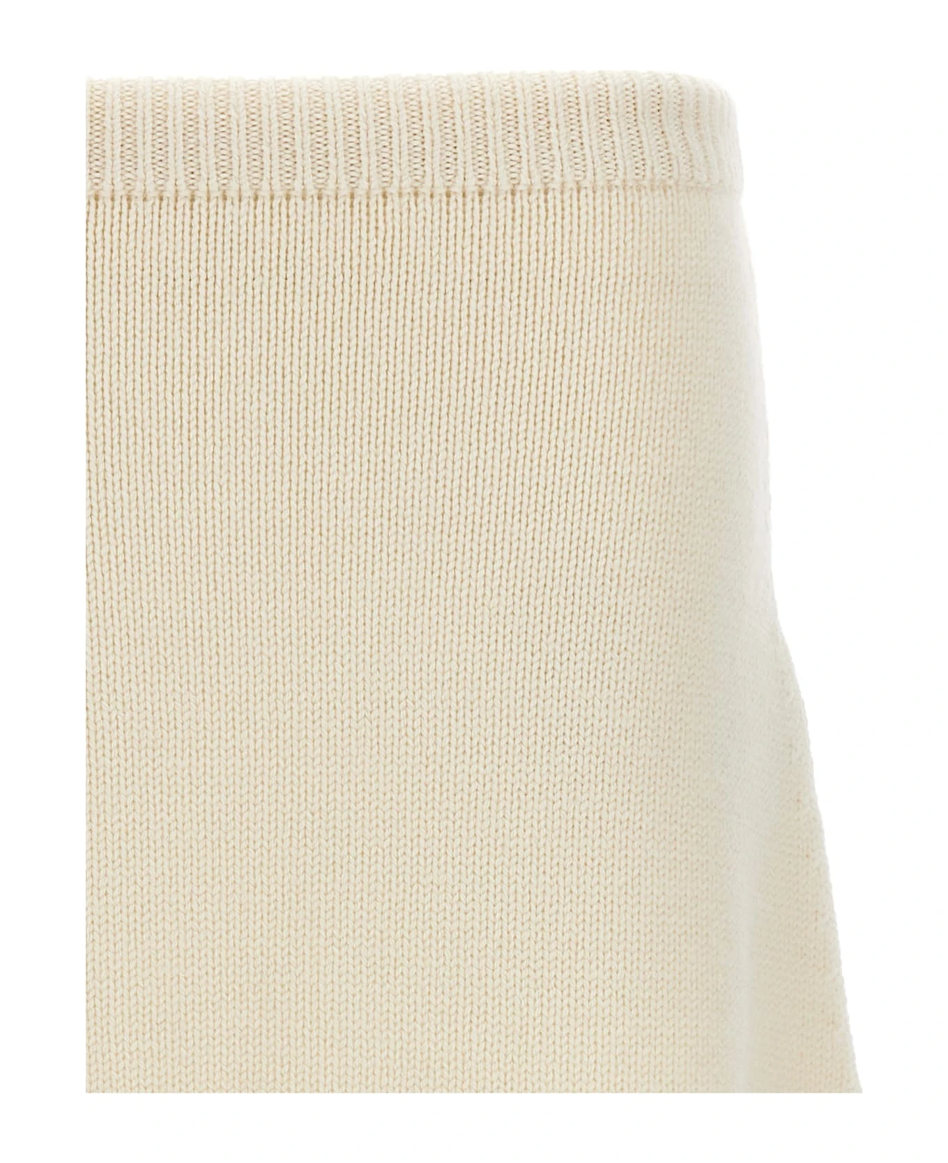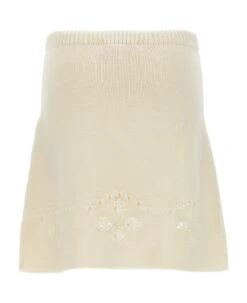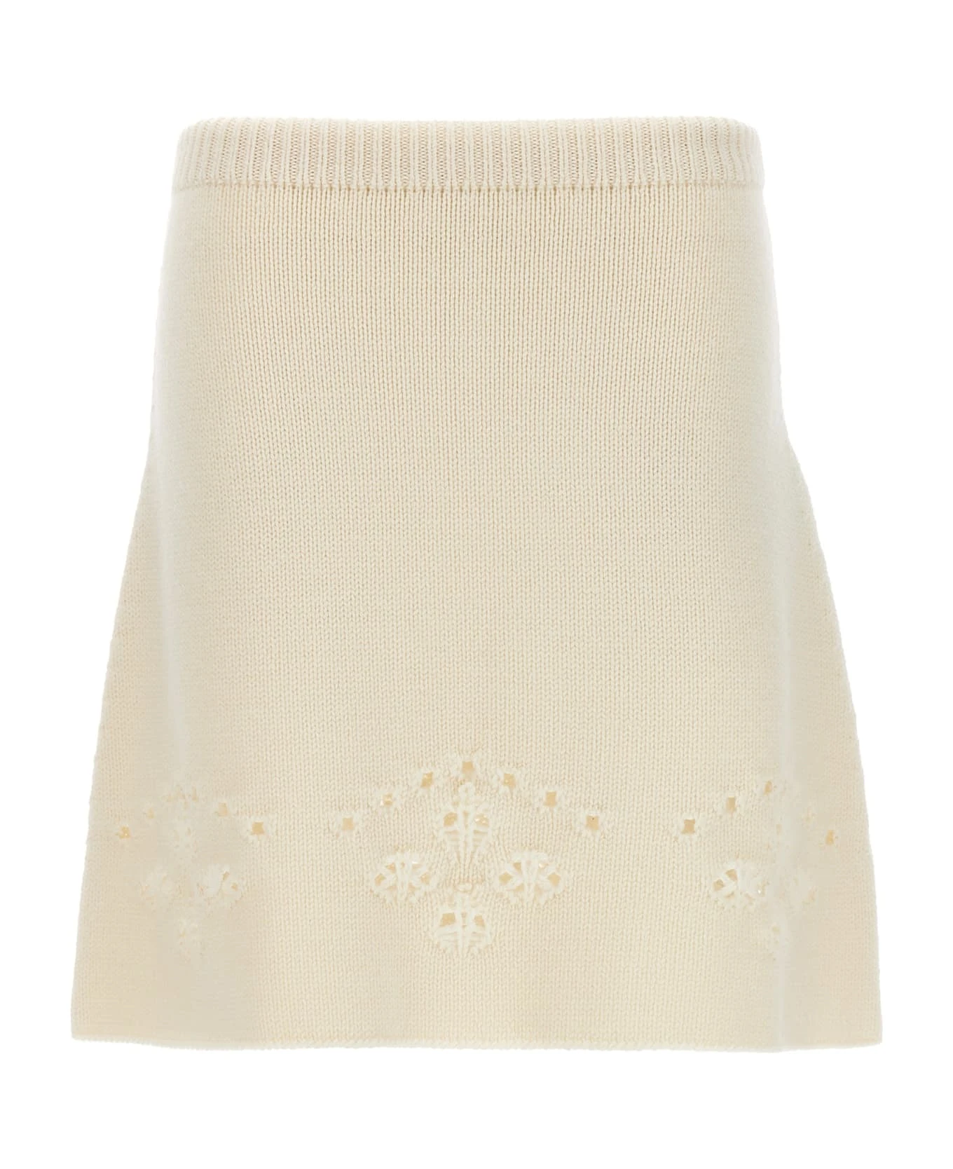 Knit wool skirt with openwork embroidery and elastic waistband.