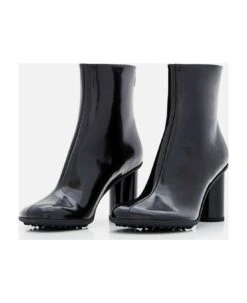 Rainboots Combat boots in green rubber/plasic, slip on, almond toe, combact rubber sole, rubber outsole, tag logo detail, 60 mm heel, Made in Romania