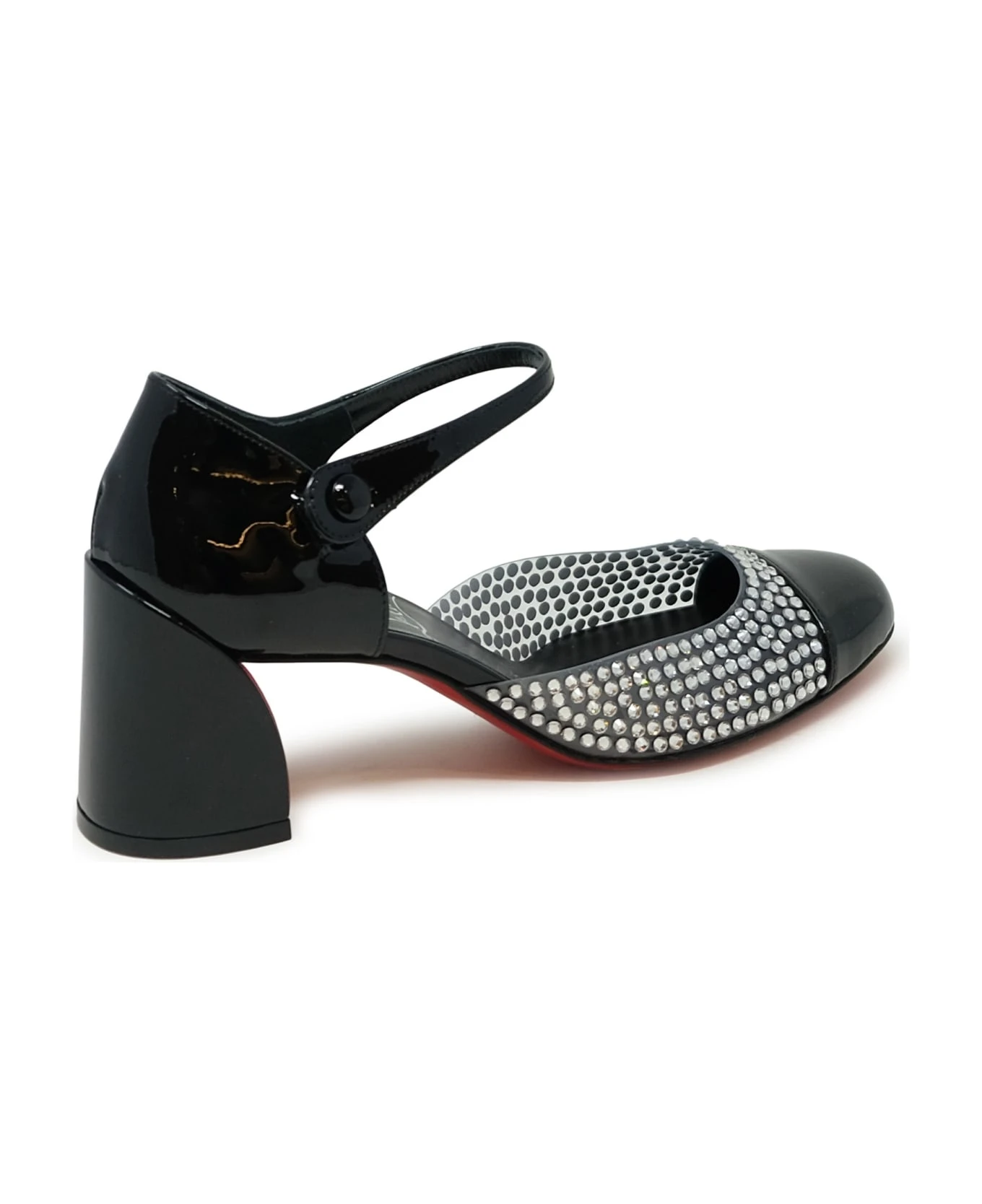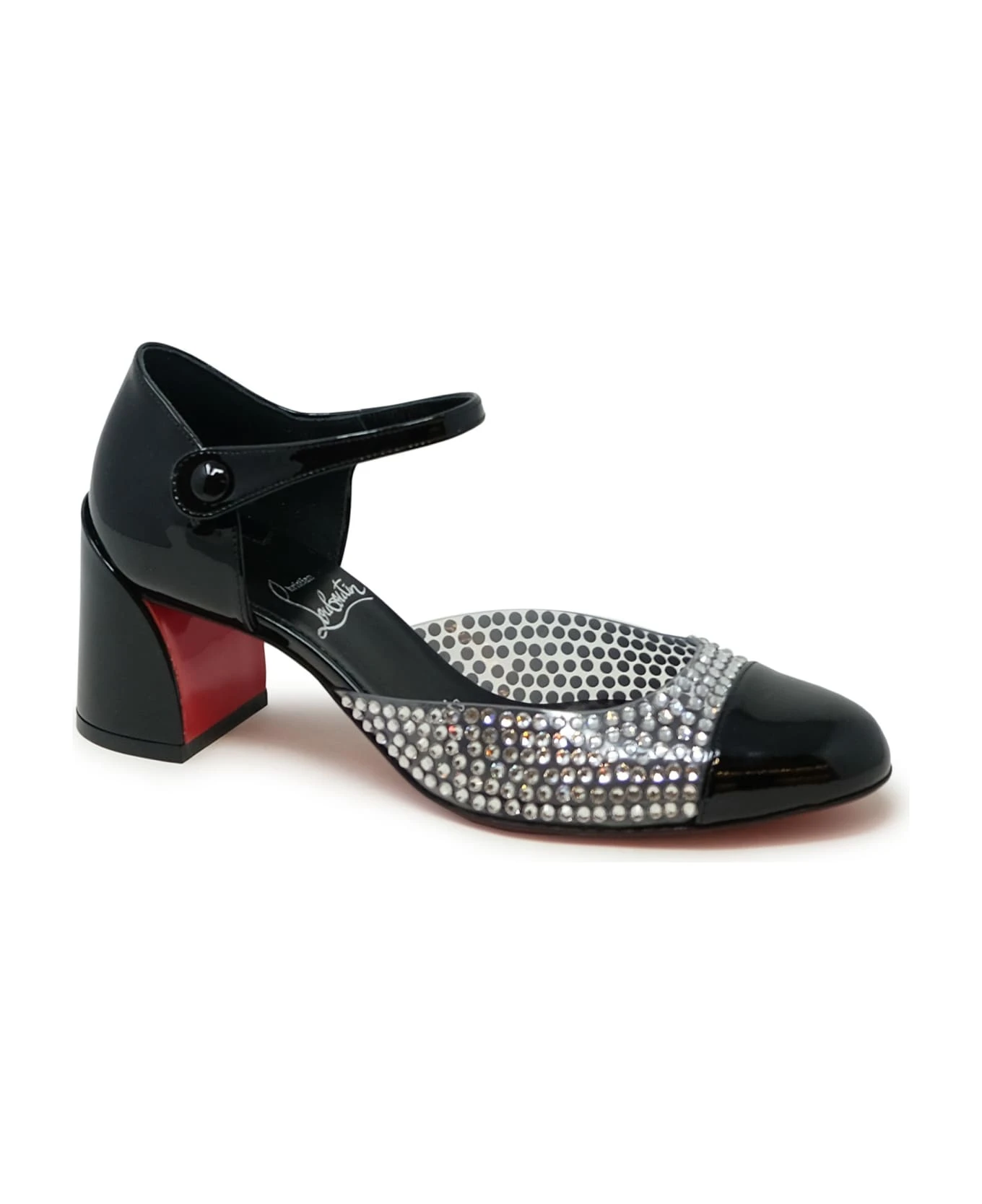 CHRISTIAN LOUBOUTIN 3230807 T023 BLACK PATENT MISS MJ STRASS 55 PUMPS, product code 3230807 T023, color BLACK, material PATENT LEATHER, heel 5,5 CM, season CARRY OVER