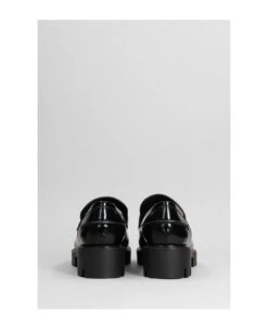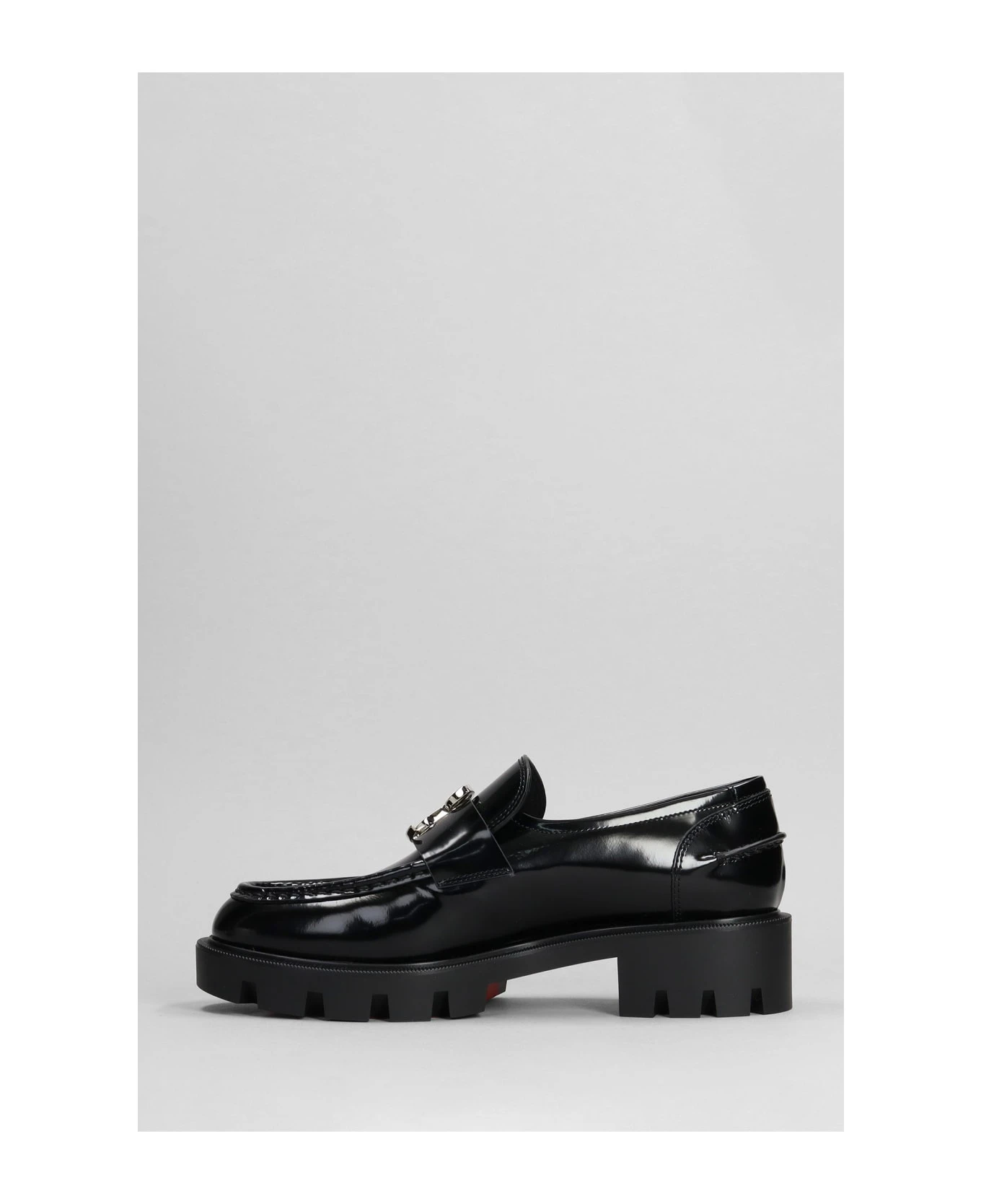 Cl moc lug Loafers in black leather, almond toe, logo buckle, silver hardware, stitching detail, 40 mm heel, combact rubber sole, iconic red sole, Made in Italy, 100% leather