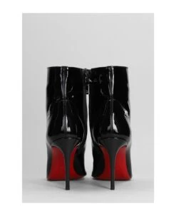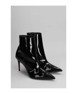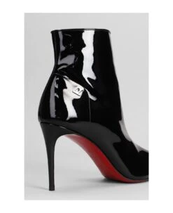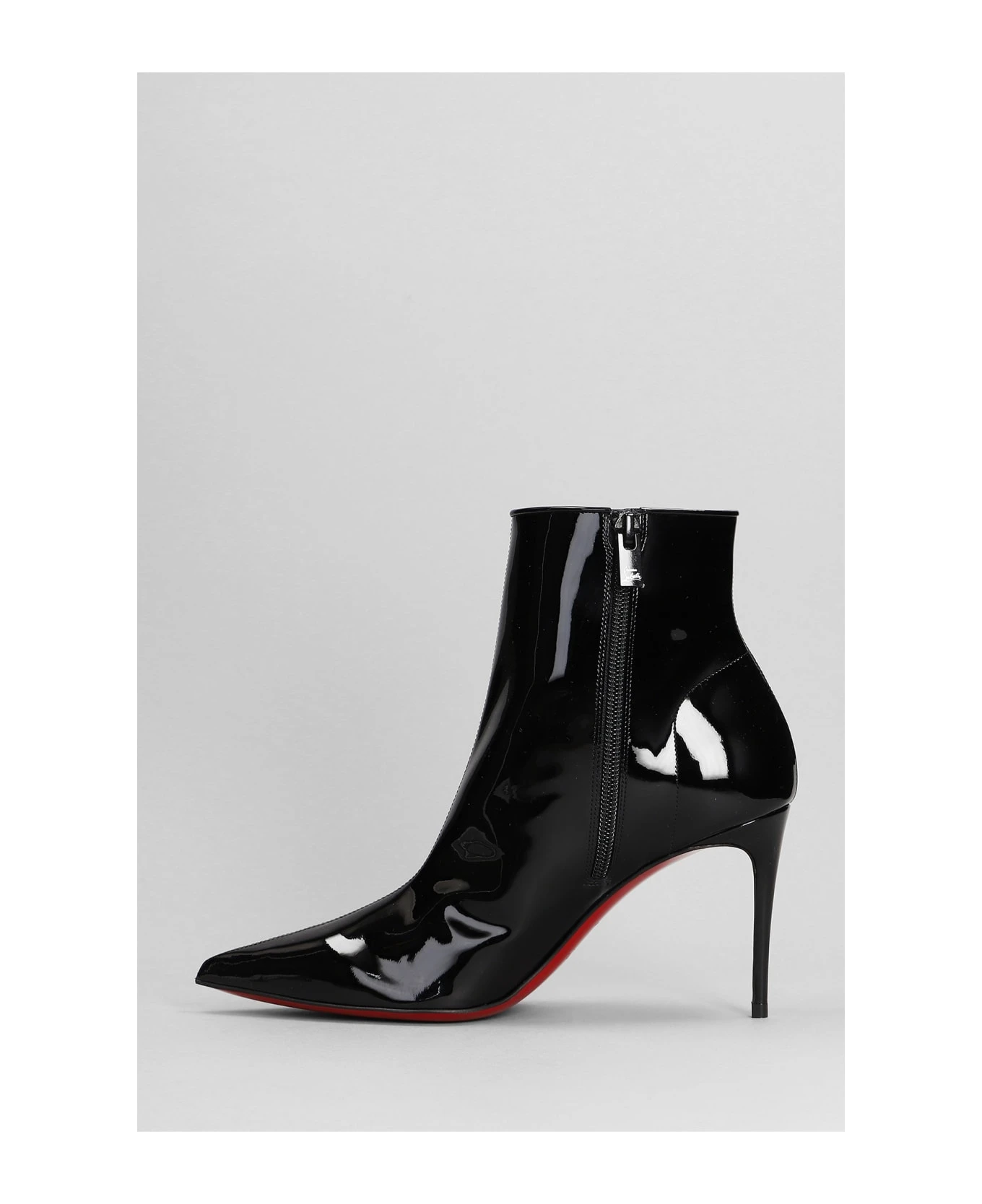 Sporty kate booty High heels Ankle boots in black patent leather, pointed toe, side zip, heel 90 mm, patent leather, iconic red sole, leather sole, Made in Italy