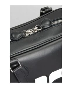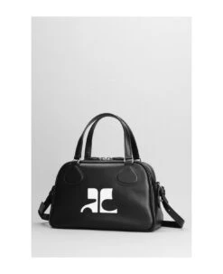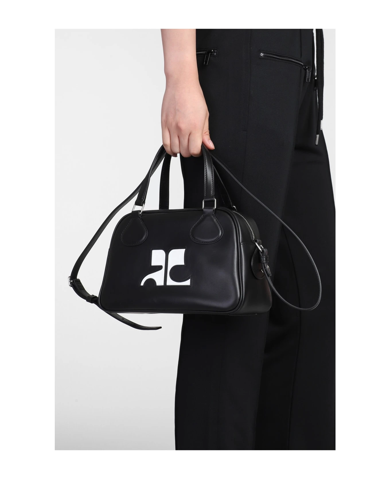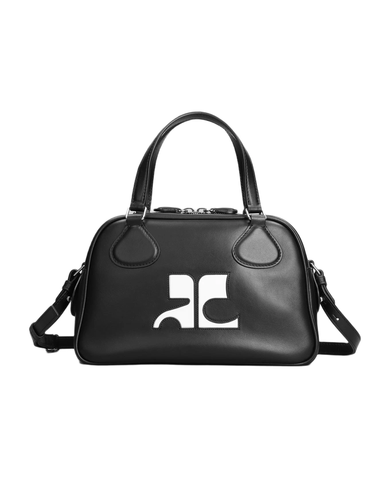 Bowling Hand bag in black leather, Height 155 mm, Width 245 mm, double handle, adjustable shoulder strap, zip closure, front logo, double zip with leather sliders, silver hardware, engraved logo, 100% leather, Made in Italy