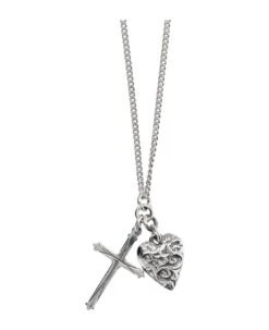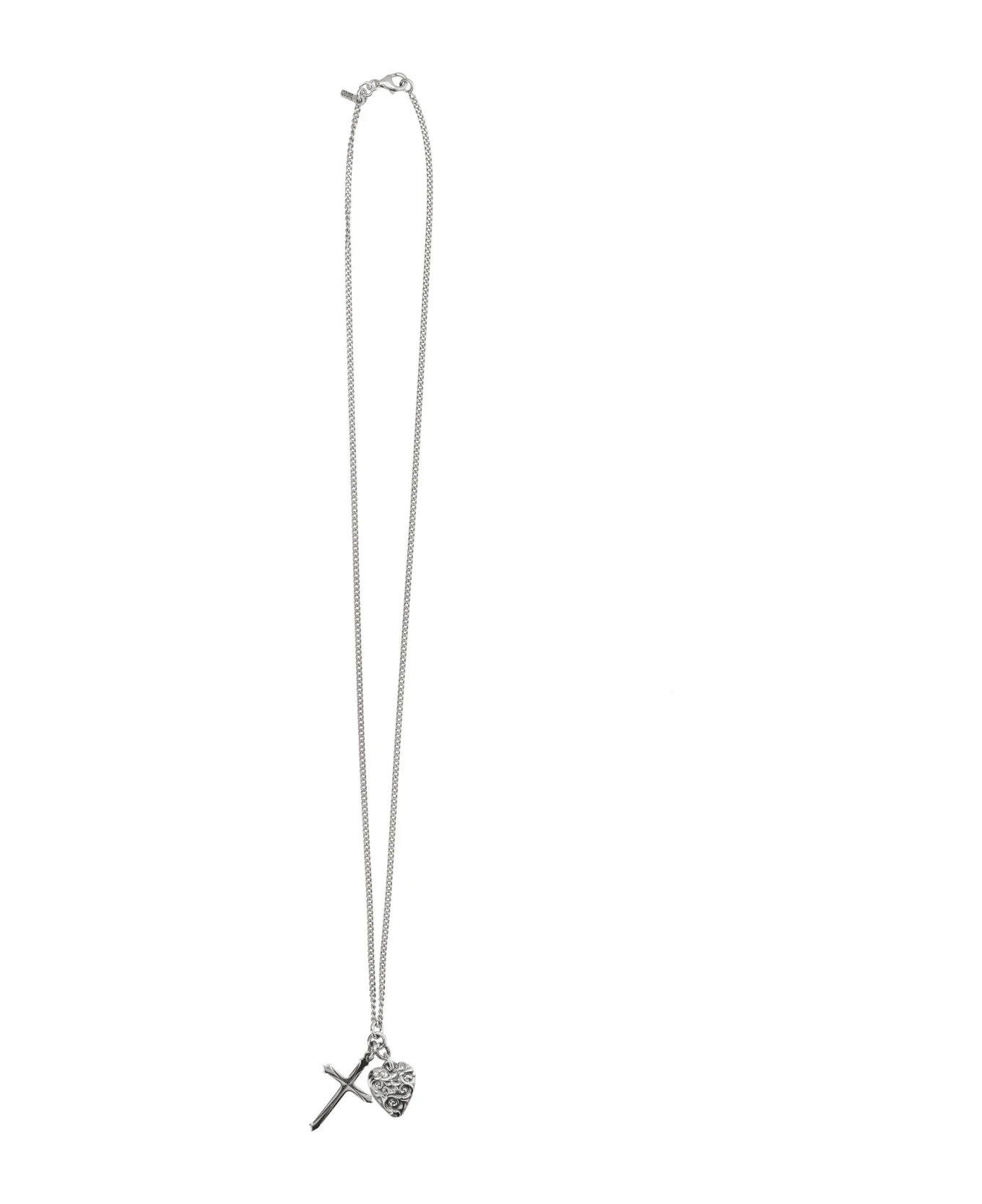 Sterling Silver Grumetta Chain Necklace With A Cross And A Heart Pendant At Drop