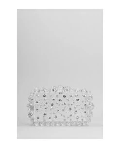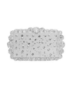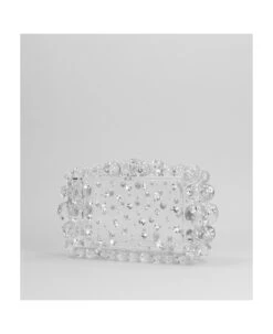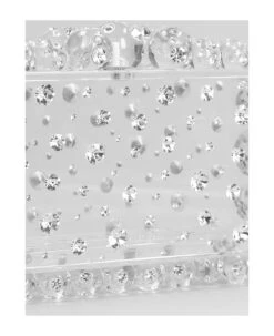 Eos Clutch in transparent acrylic, Height 140 mm, Width 225 mm, Width 225 mm, snap closure, in plexiglass, crystals detail, Made in China, 100% acrylic