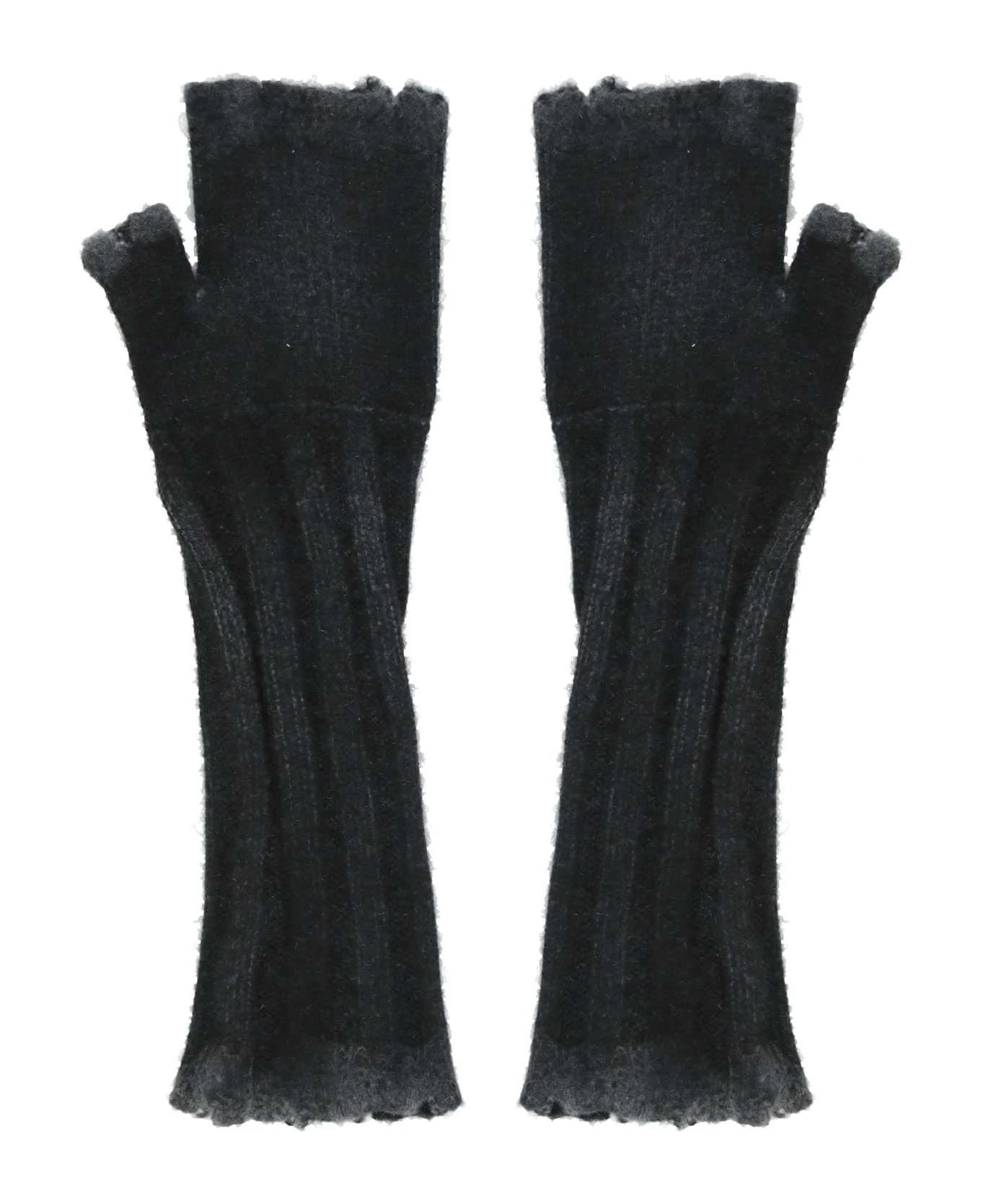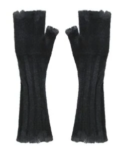 Destroyed Long Gloves from Avant Toi: – Black Avant Toi wool and cashmere gloves for woman