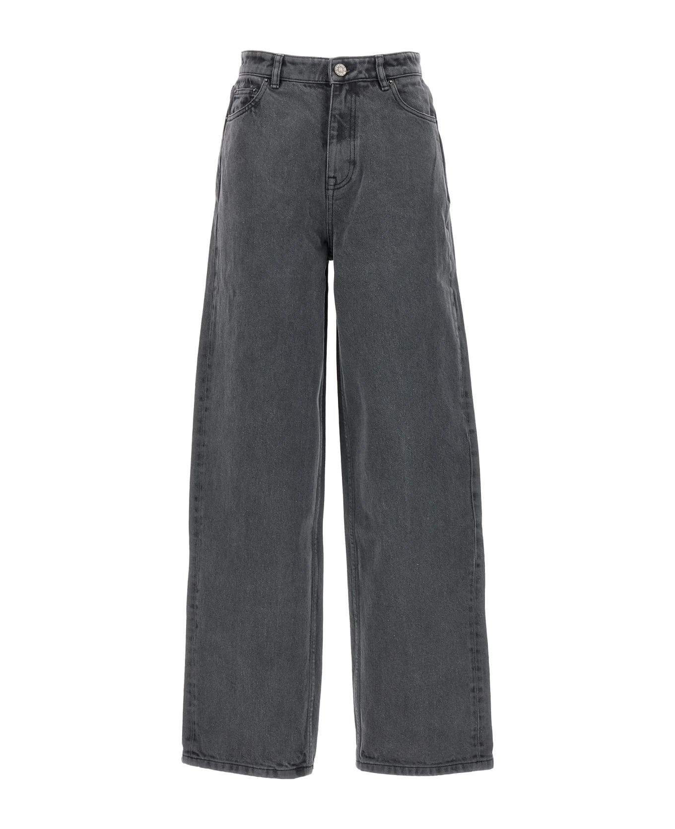 Dixie’ high waist, cotton denim jeans with sequin logo at the back, a zip and button closure, five pockets and a loose leg. : This product is made in organic cotton.