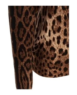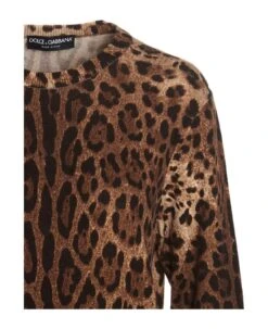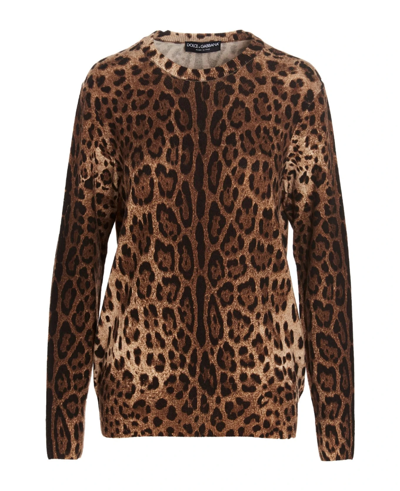 Animal print cashmere sweater with crewneck, long cuffed sleeves.