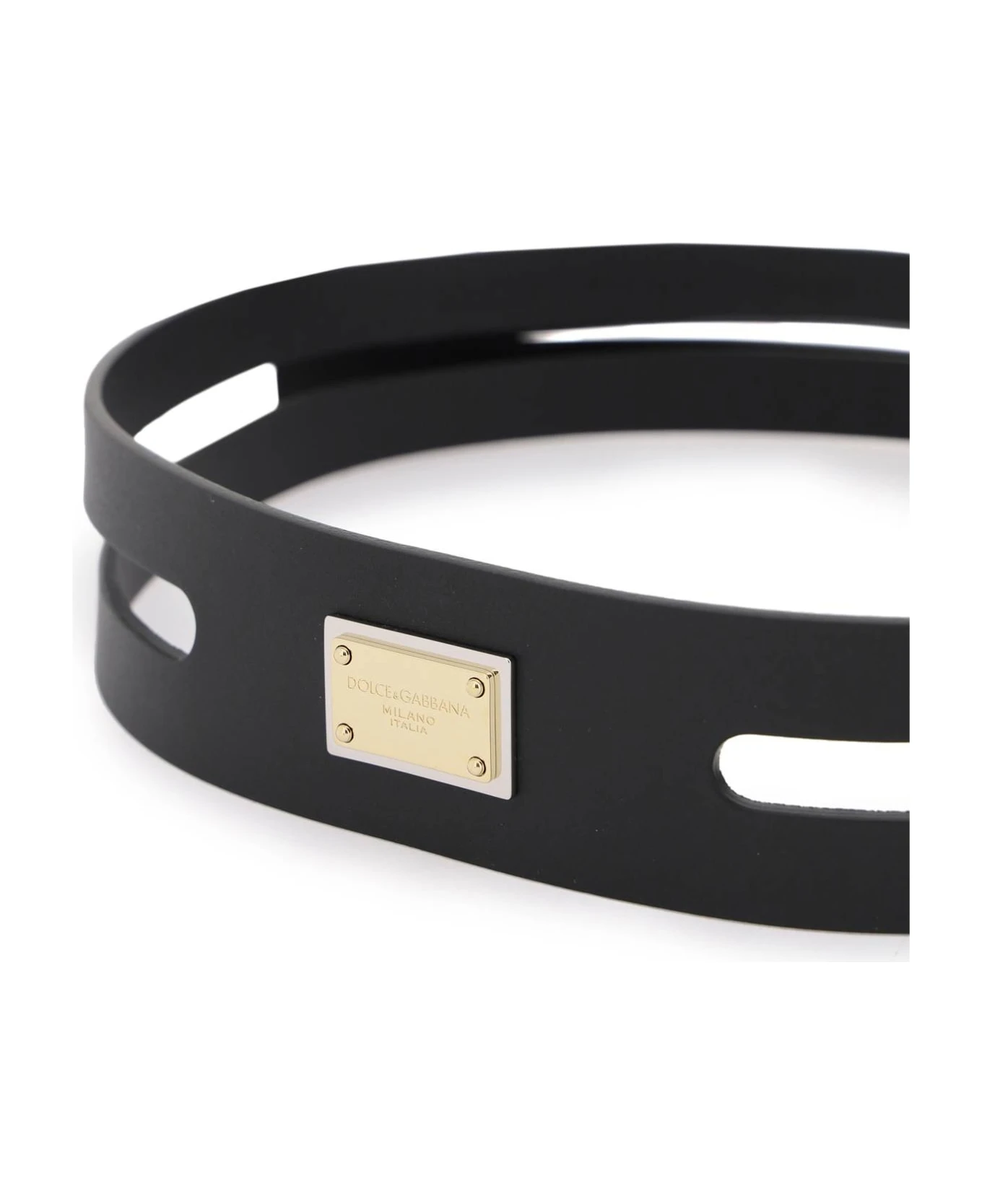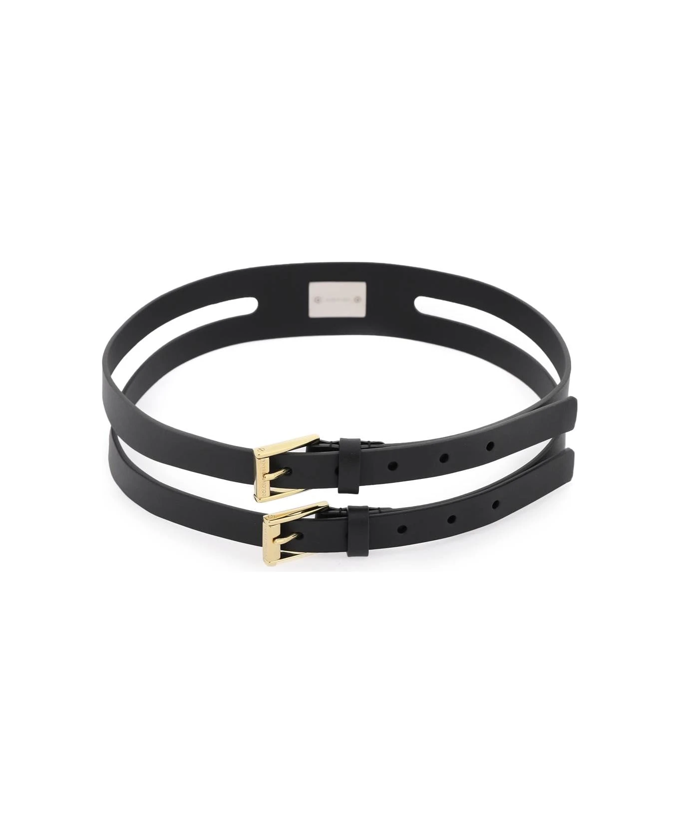 Dolce & Gabbana leather belt with double buckle and characterized by the iconic two-toned tag on the back. The item in photo is size 95.