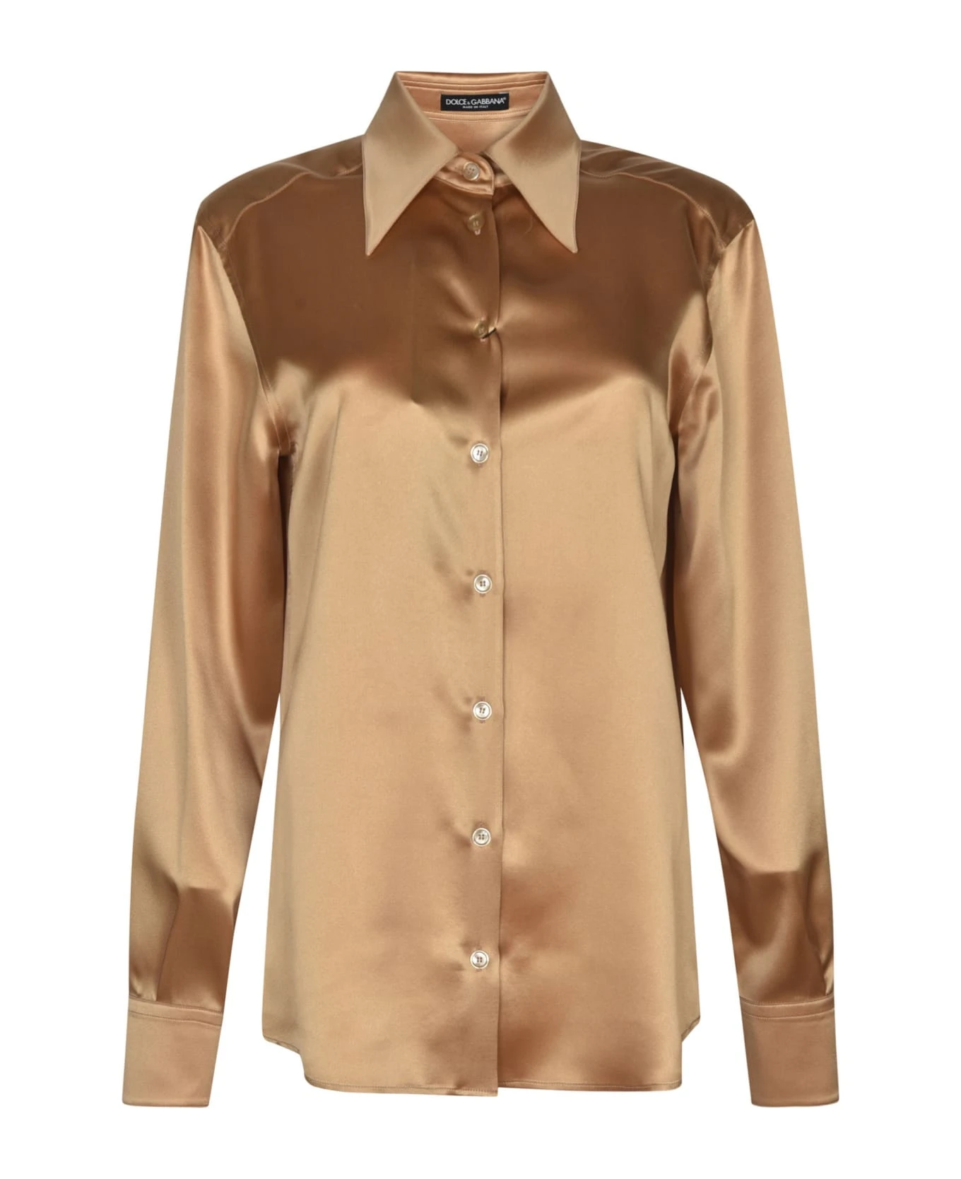 Brown Classic Shiny Shirt from Dolce & Gabbana