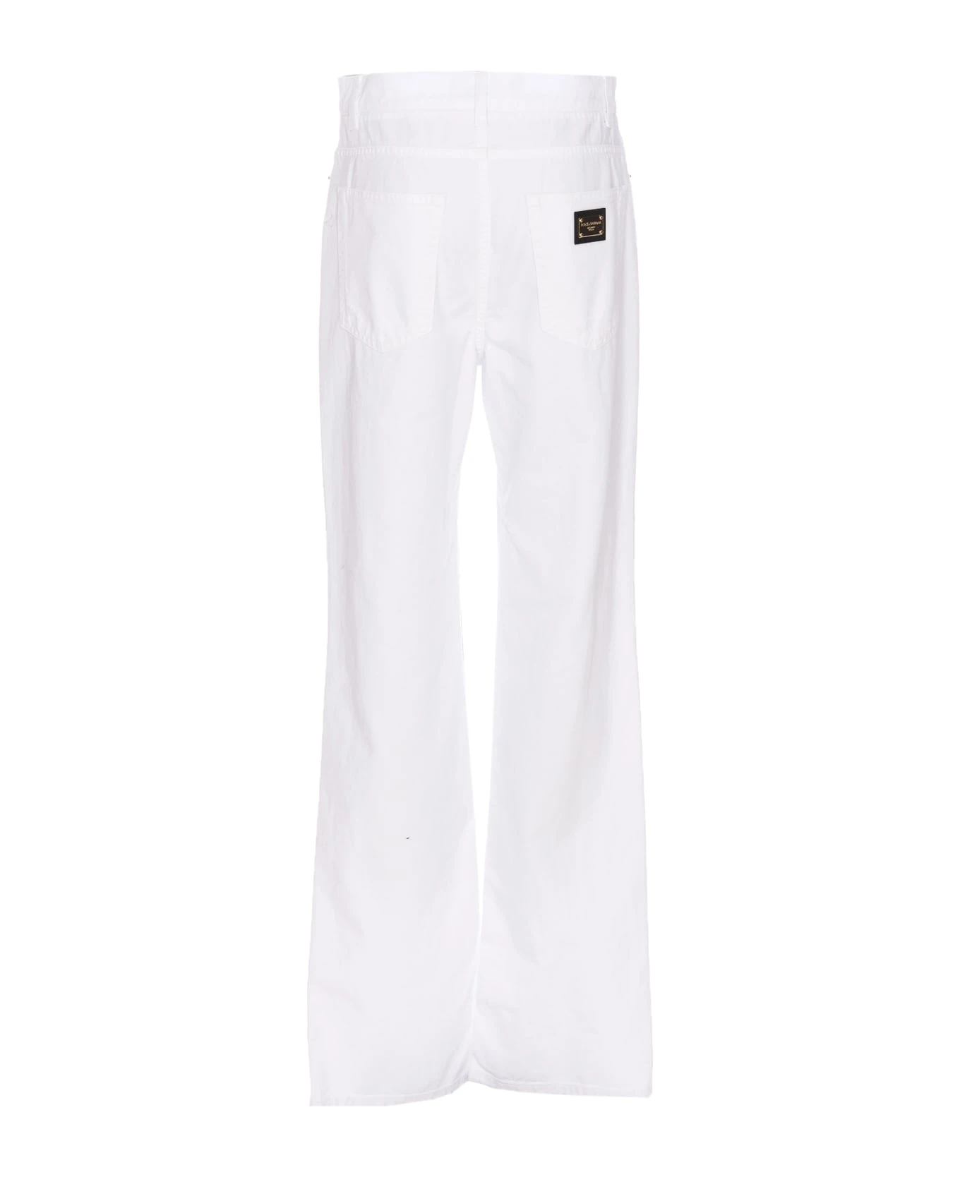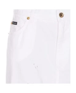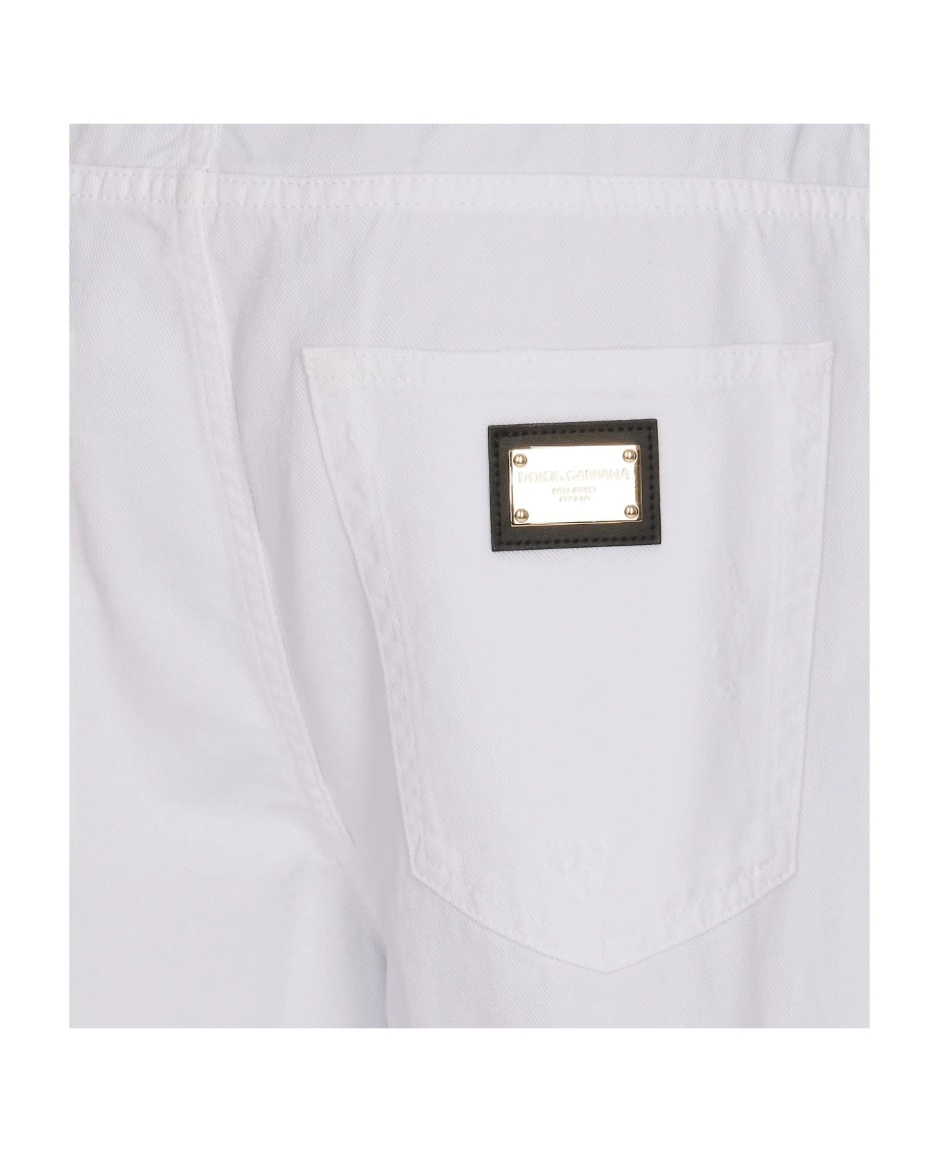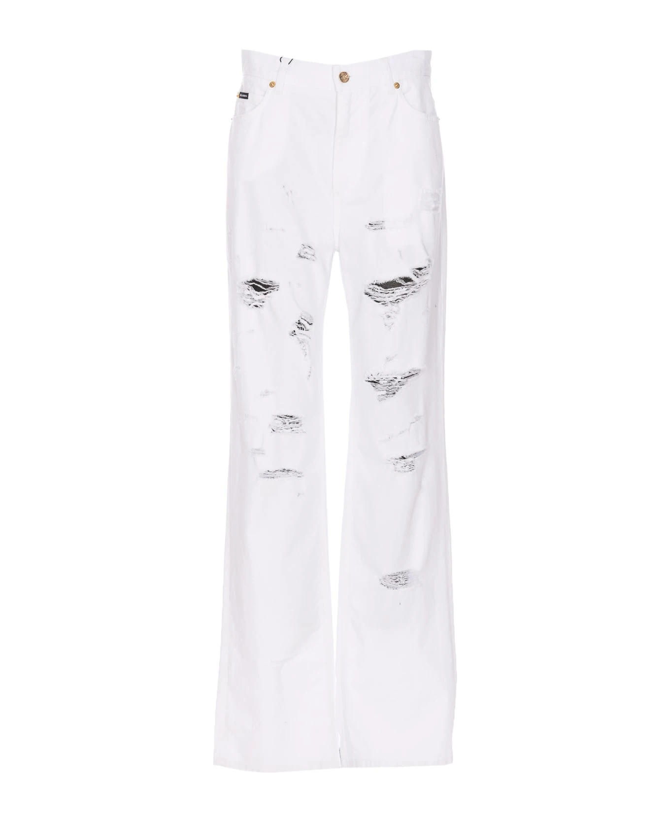 Dolce&Gabbana white distressed denim jeans with frontal button and zip closure, 5 pockets, regular fit