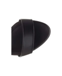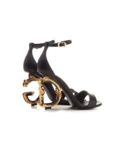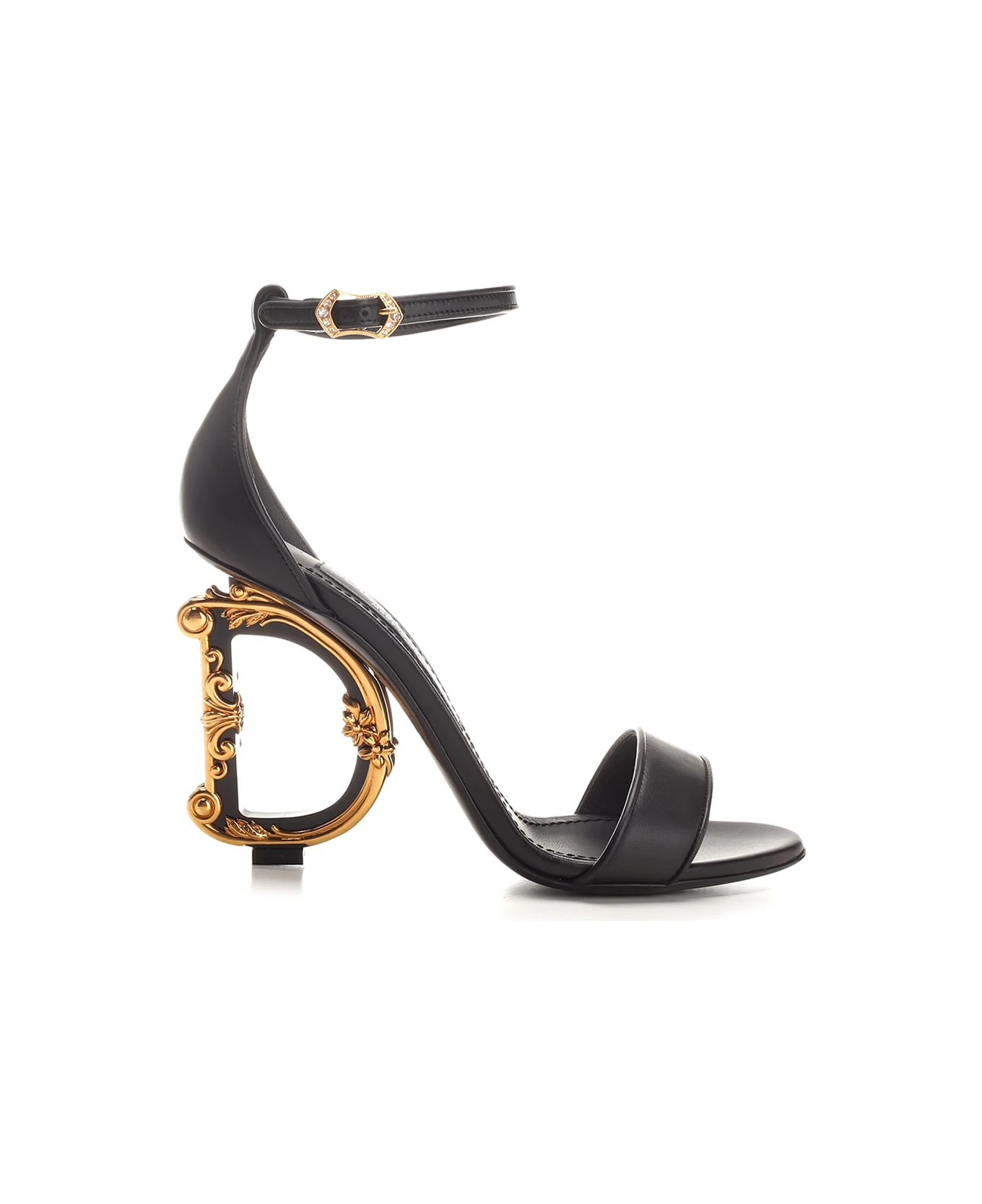 Black leather “Devotion” sandal from Dolce & Gabbana, with ankle strap, baroque sculpture heel.