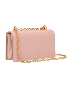 ‘DG Girl’ mini calf leather crossbody bag with gold logo and hardware, flap closure and chain shoulder strap.