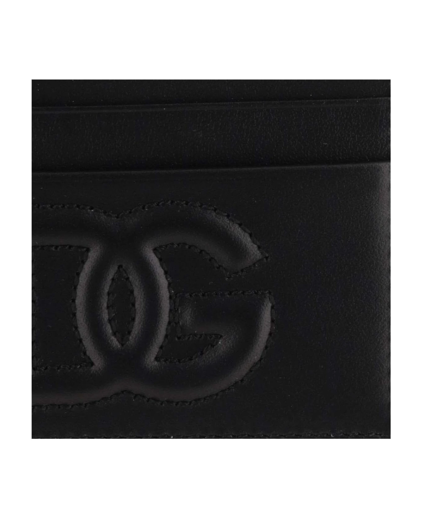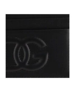 Credit card holder made of leather DG quilted logo with a three-dimensional effect Four card slots One central pocket Black Made in Italy Composition: 100% calfskin leather