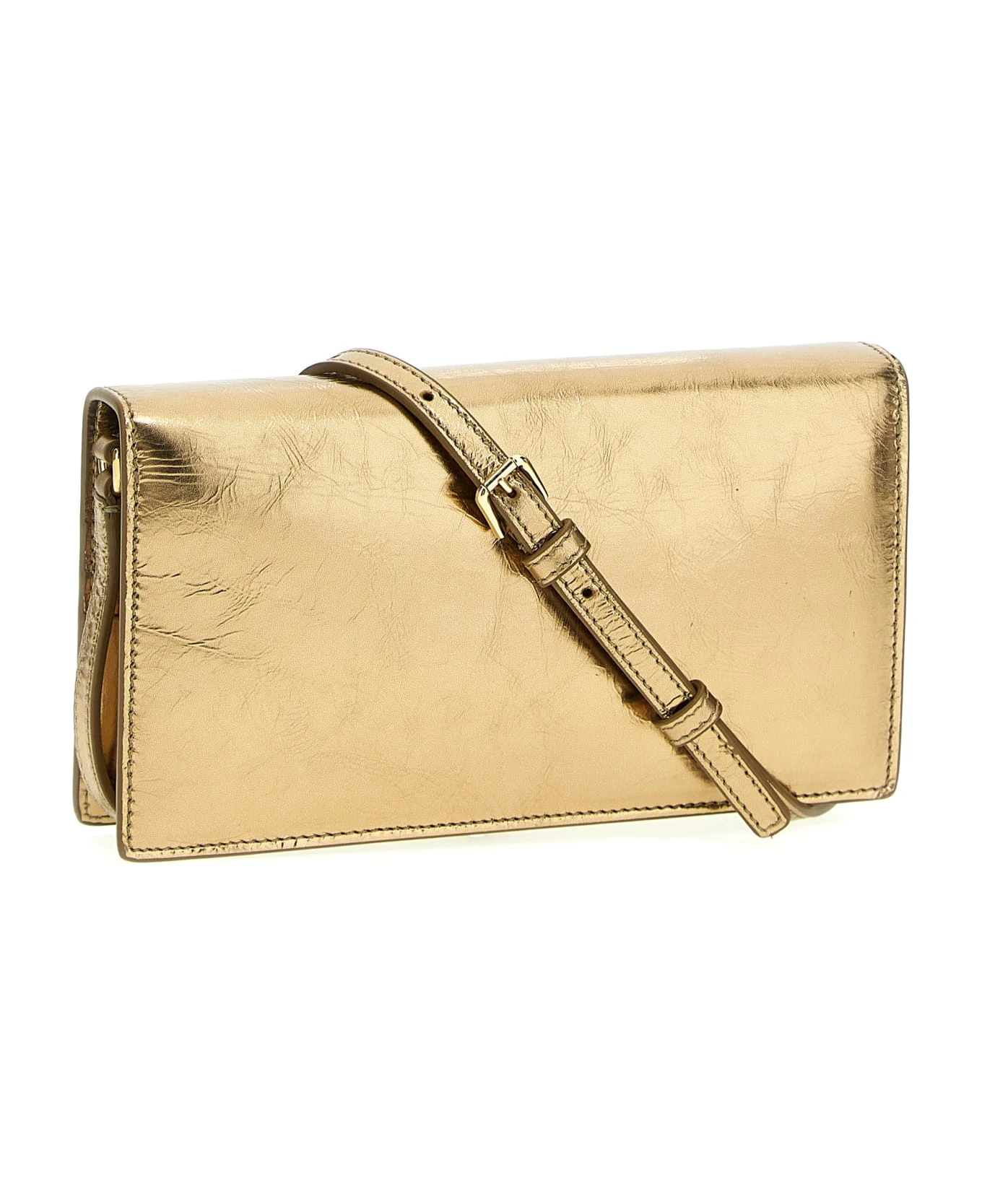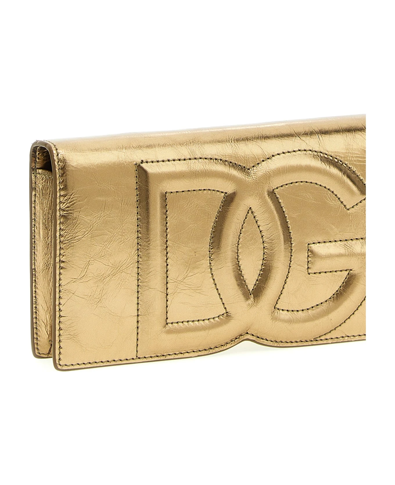 ‘DG Logo’ smartphone crossbody bag in foil cracklรฉ calf leather, magnetic flap closure, adjustable and removable shoulder strap.
