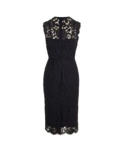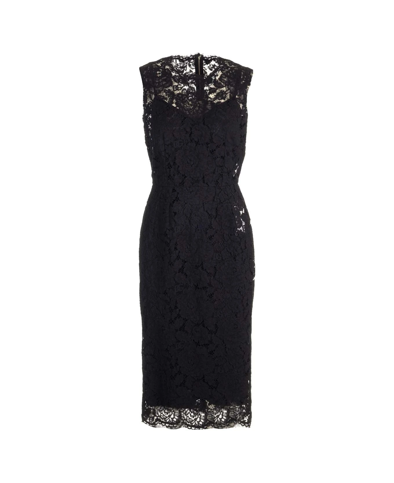 Sleeveless black lace sheath dress from Dolce & Gabbana, with satin lining, scalloped hems and concealed zip.
