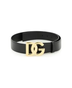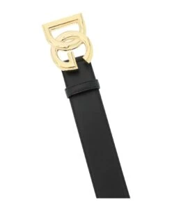 Dolce & Gabbana belt in smooth leather, characterized by the DG logo pin buckle in shiny gold-finished metal. Leather lining. The item in the picture is a size 90.