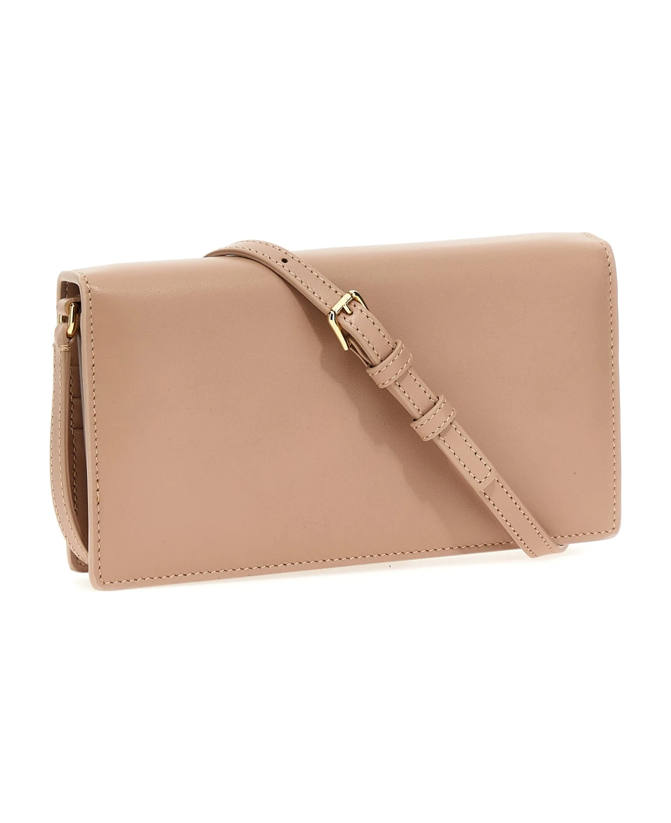 Leather smartphone holder with embossed logo on the front, magnetic closure, adjustable and removable leather shoulder strap.