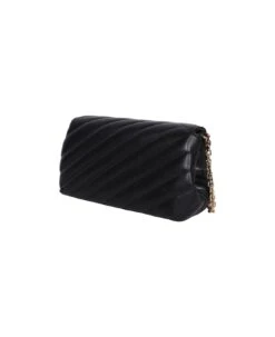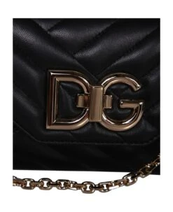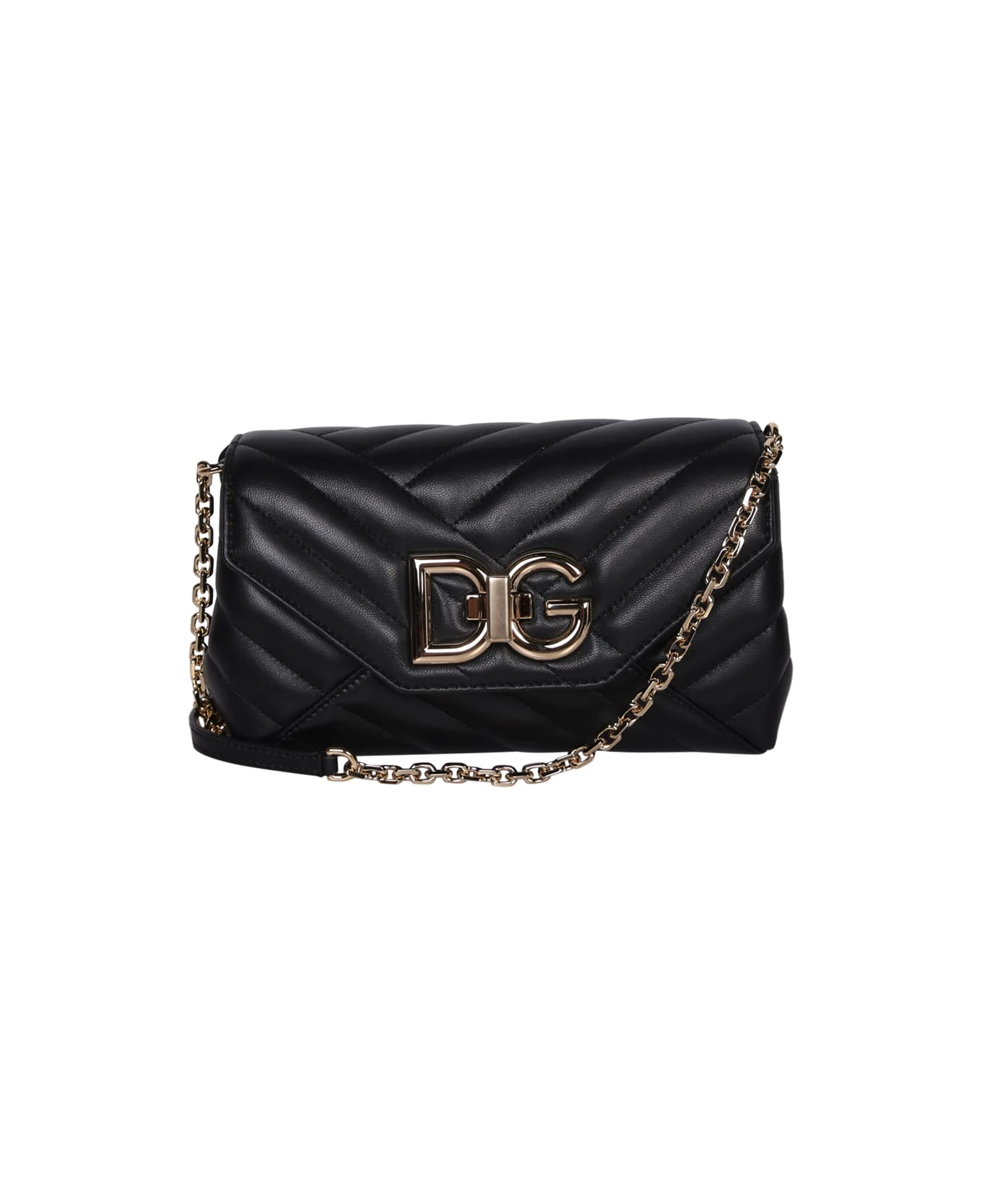 Foldover top. Front fastening. Logo DG to the front. Main compartment. Internal zip fastening pockets. Adjustable shoulder strap. Matelassé leather. Color: black