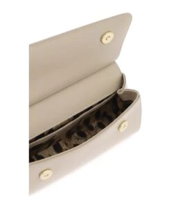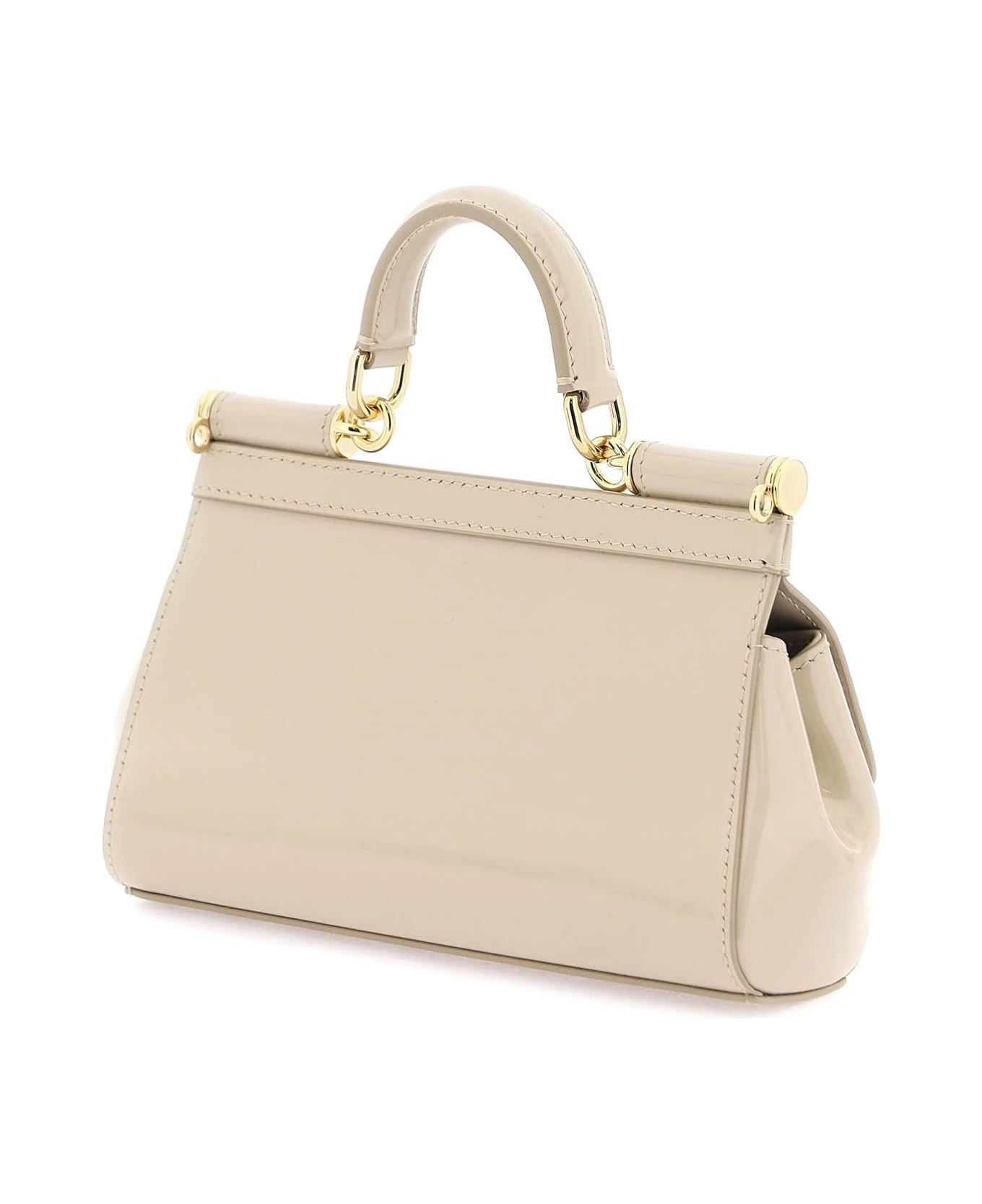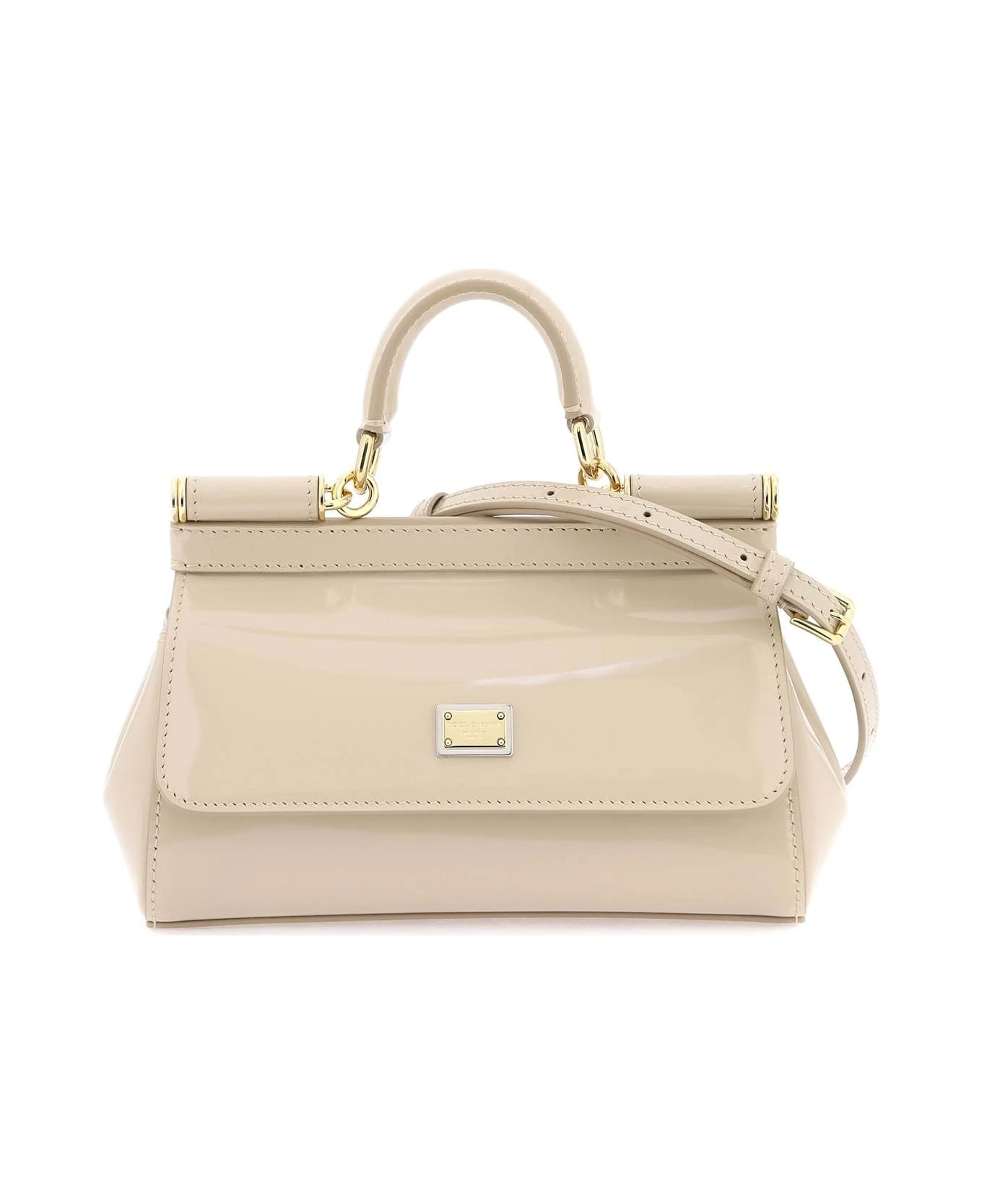 Mini Sicily bag by Dolce & Gabbana crafted in patent leather with single top handle, removable and adjustable shoulder strap, flap with double magnetic button closure and the iconic metal logo plate. Leopard-printed fabric lining, one inner open flat pocket, gold-finished metalware.
