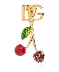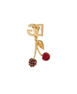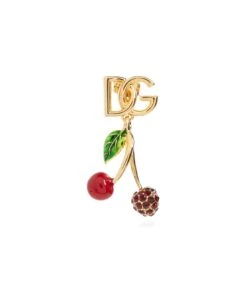 Gold-tone mono earring with the brand’s logo from Dolce & Gabbana. Fastened with a push back closure, this item showcases a cherry charm with a colourful enamel trim and glossy crystals.