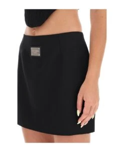 This Dolce & Gabbana’s mini skirt flaunts the signature metal logo tag at the front. Cut in a mid-rise with a straight silhouette, it is made from viscose ottoman, which adds texture to its neat design. Back zip closure, lined interior. The model is 177 cm tall and wears a size IT 40.