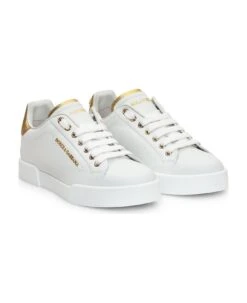 Low white sneaker. Lace-up closure. Pearl detail with logo on the heel. Logo on the side and tongue.