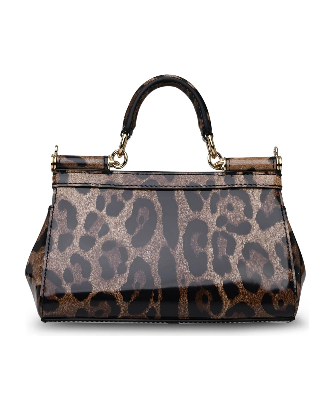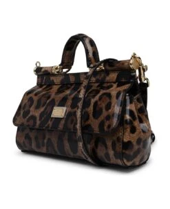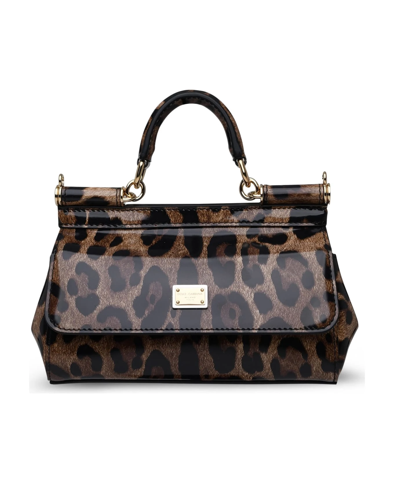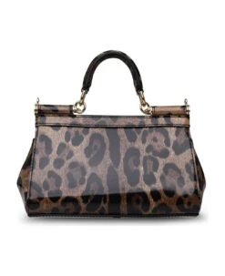 Animal print, top handle and a removable shoulder strap, front flap with double magnetic closure, logo metal plaque, inner flat pocket n13 x 19 x 6 cm