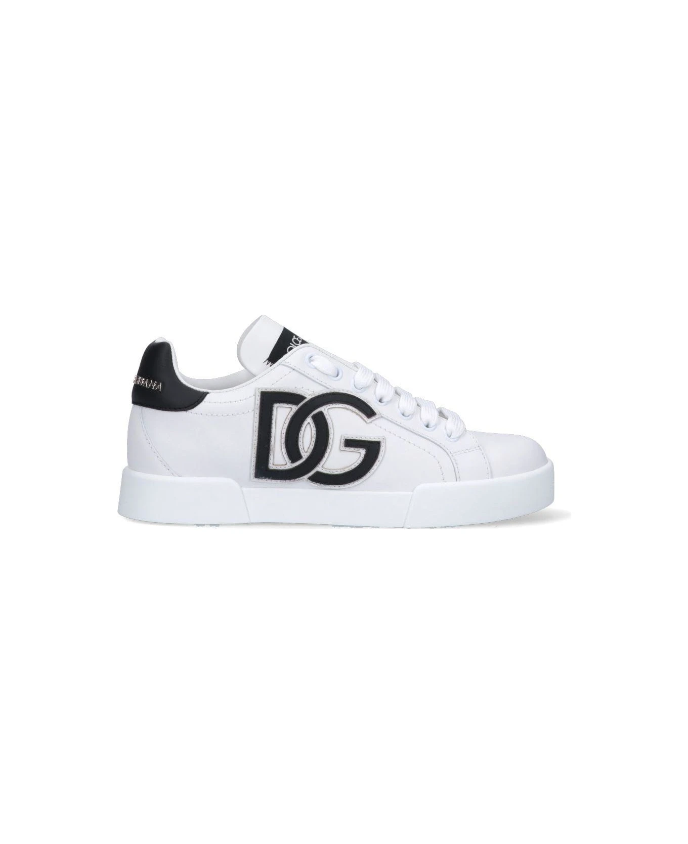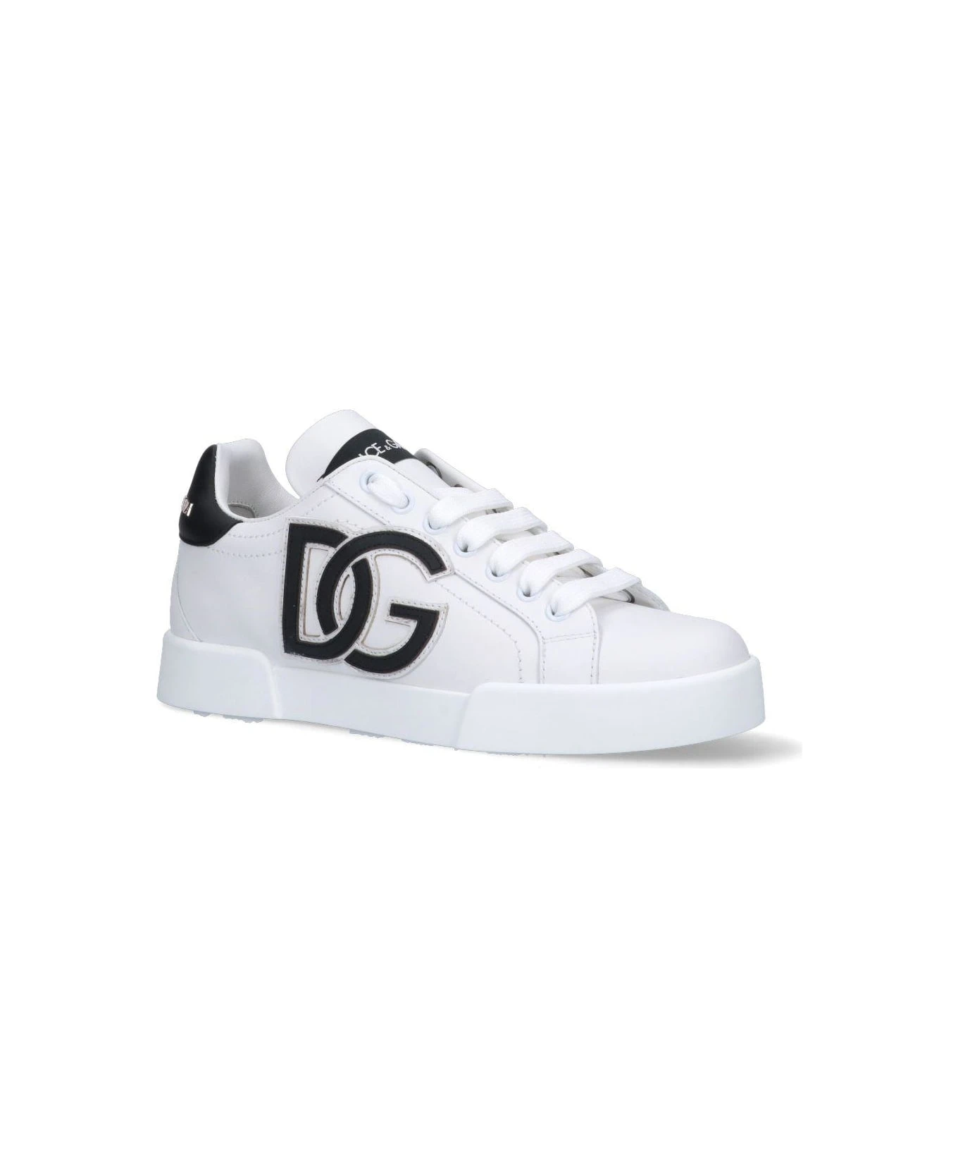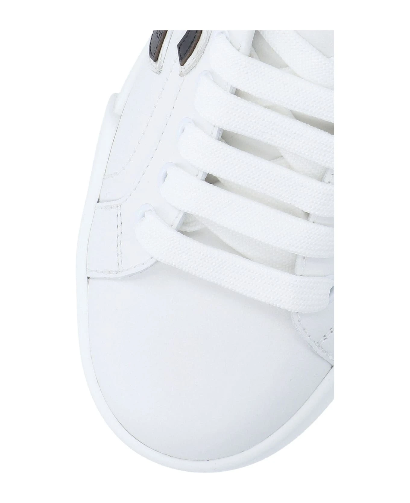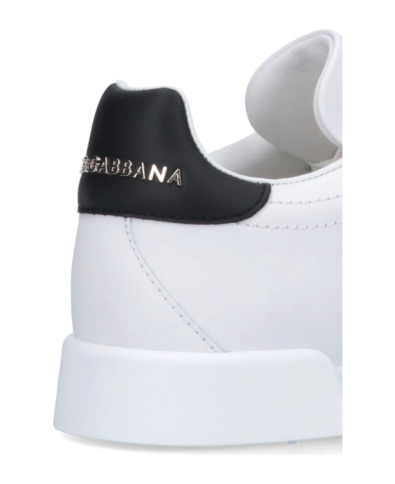 Dolce & Gabbana Sneakers ‘Portofino’, leather, white colour, black colour details, round toe, side logo patch, lace-up closure, logo lettering detail on tongue, back logo tab, rubber sole.