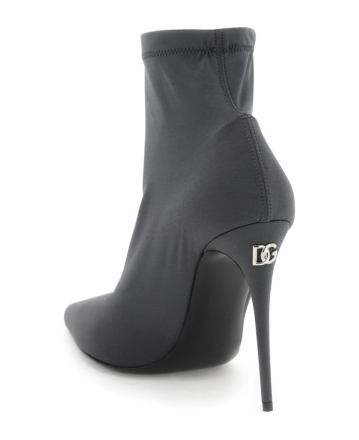 Stretch jersey ankle boots by Dolce & Gabbana from the “Ciao, Kim” collection in a pump design with a stiletto heel, leather footbed and leather sole.