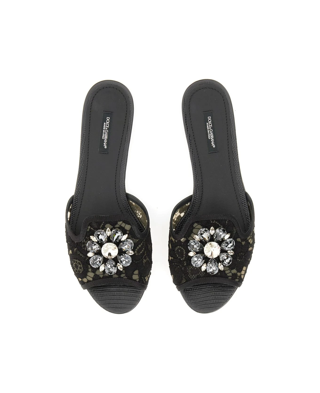– Heel: 1. 5 Cm- Taormina Lace Band With Jewel Detail- Leather And Satin Insole With Logo Label- Packaging In Theme With The Article- 59% Viscose, 29% Cotton, 8% Silk, 4% Polyamide- Made In Italy