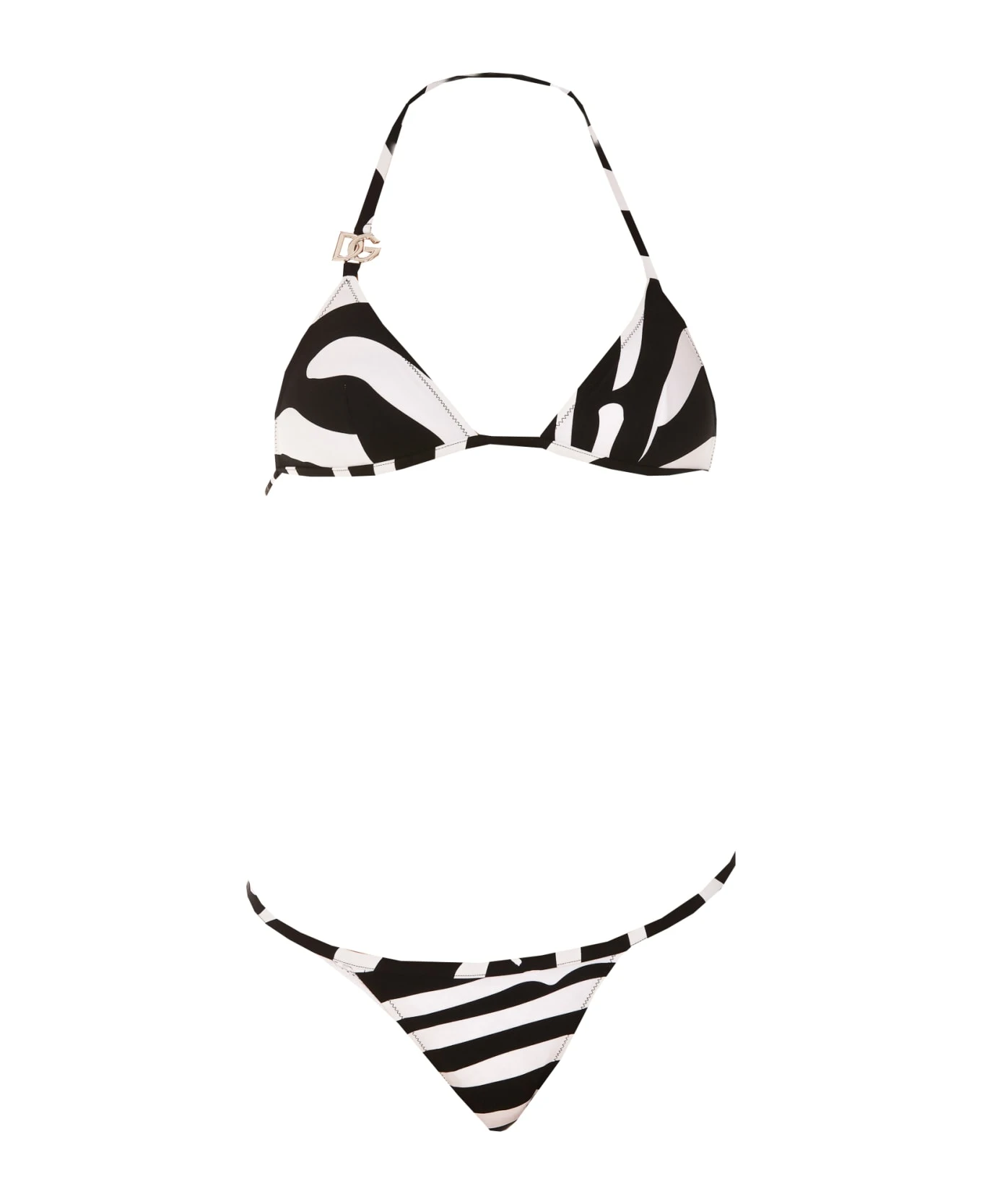 Zebra b/n Zebra Print Triangle Bikini With Logo from Dolce & Gabbana