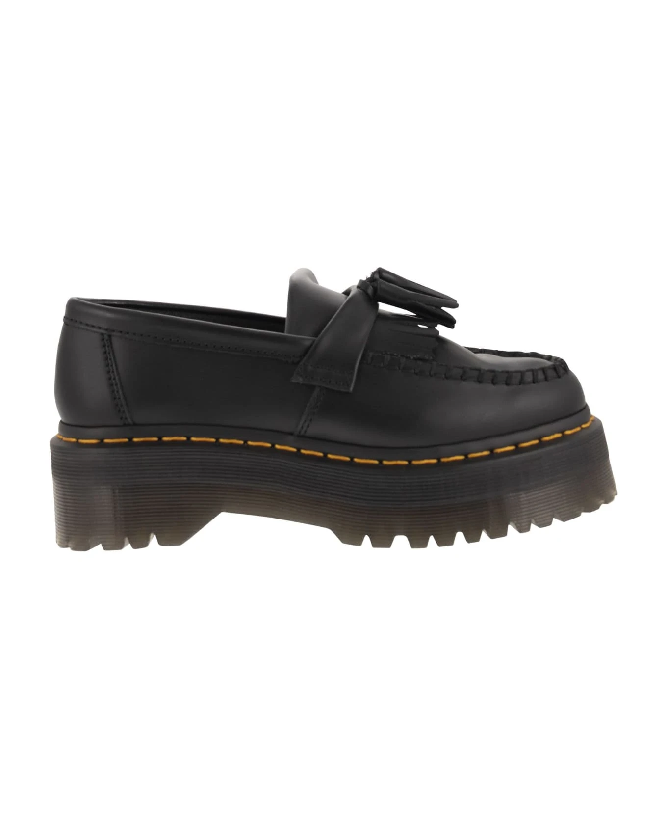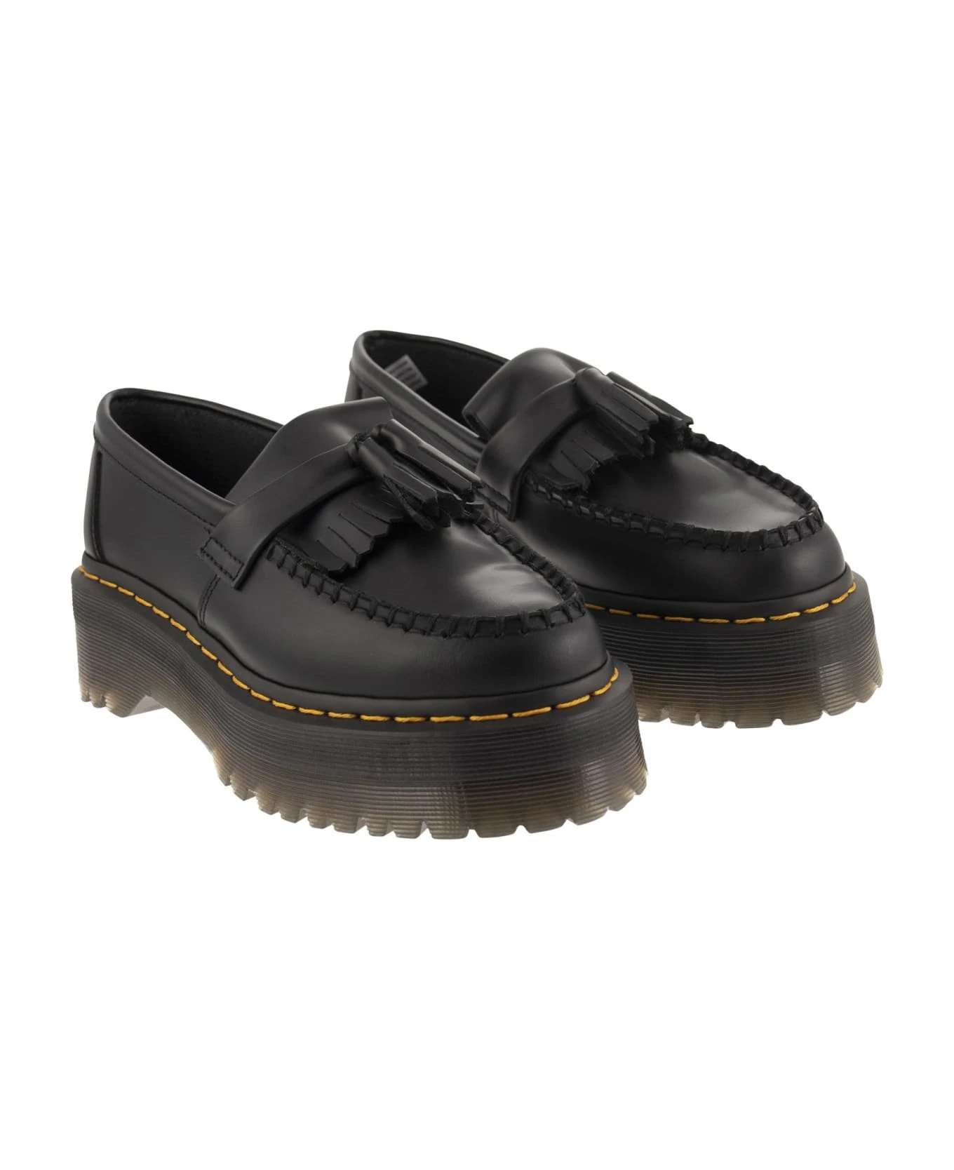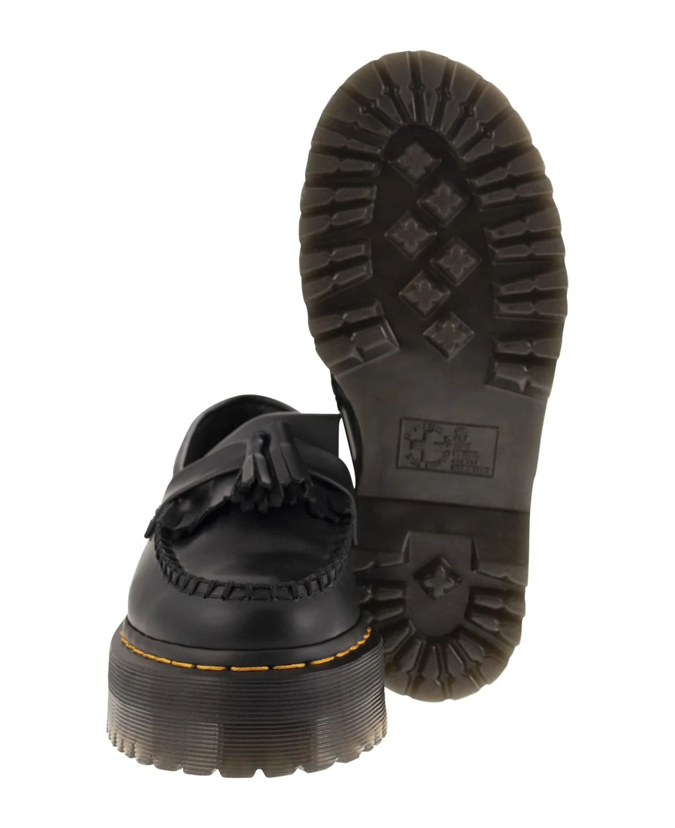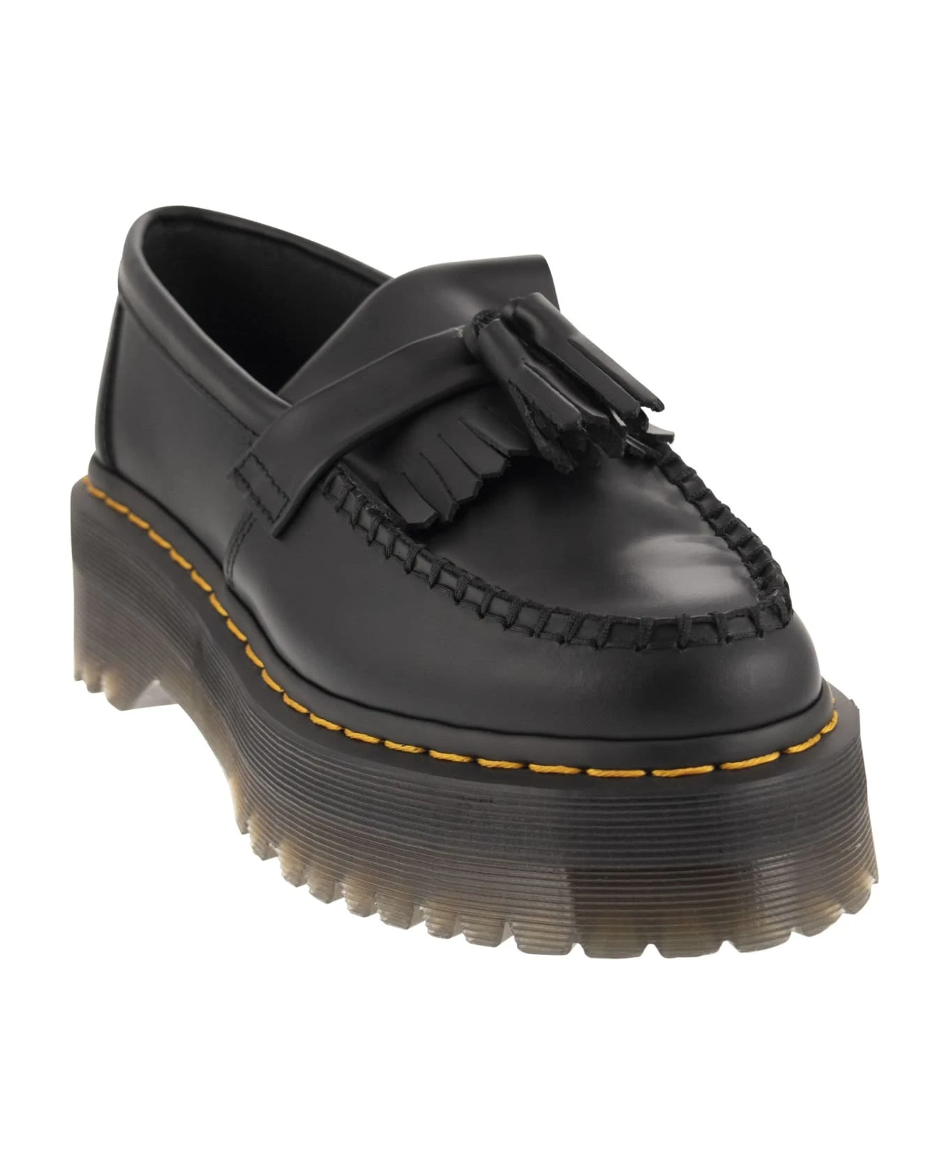 The classic Adrian shoe inspired by the 80s subculture has reached new heights. This new version rests on a 5. 08cm stacked Quad sole and is made from classic Smooth leather. Made to provide security. Finished with a double tassel and kiltie fringes. – Grooved edges – Exposed yellow stitching – Kiltie fringes DESIGNER ID: 27989001