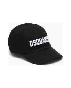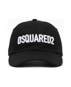 Black cotton baseball cap by Dsquared2, featuring an adjustable fit and contrasting embroidered logo.